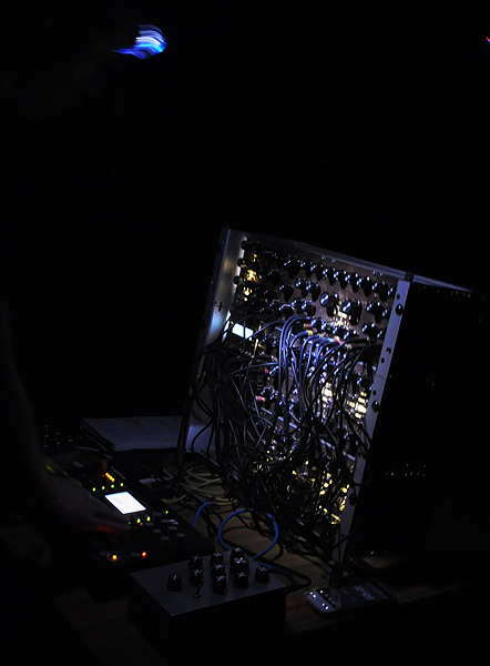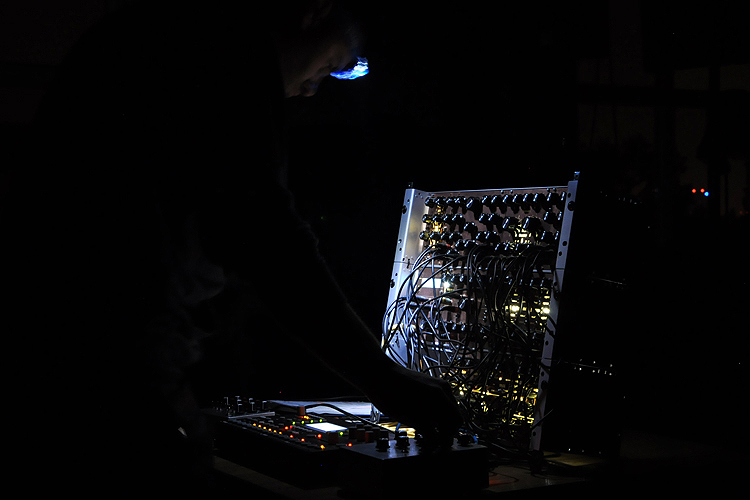 Wydawać by się mogło, że po tak efemerycznym i dość sennie brzmiącym secie, nic nie jest w stanie przywrócić do życia przetrzebionej już publiczności. Ale Pawłowi Kulczyńskiemu, który wystąpił jako Wilhelm Bras udało się to fenomenalnie. Dla mnie ten koncert okazał się objawieniem nie tyle w skali festiwalu czy Polski ale wręcz tego, co potrafią zaprezentować artyści na całym kontynencie. Kulczyński złamał konwencje występu kilkakrotnie – postawił skonstruowany przez siebie syntezator modularny na środku sali, wśród publiczności, kazał zagasić światło, a sam wystepował jedynie z górniczą lampką na czole, migocząc nią na wszystkie strony. Zaserwował set obłędny, szalenie płynny i wciągający – oparty przede wszystkim na materiale z Wordlesss Songs for Electric Fire. Jego muzyka, podobnie jak na płycie nie wypadła stricte tanecznie, ponieważ muzyk w trakcie setu, regularnie ją psuł, bawił się rytmiką i wprowadzał na bieżąco modyfikacje. W ciemności tańczył i aż żal, że publiczność nie dała się wciągnąć do tej zabawy – może po prostu dlatego, że jego występ chcąc nie chcąc, wprawiał w osłupienie. Wyjątkowość jego pomysłów tylko potwierdziła jego artystyczną dojrzałość i doskonałe operowanie własnym językiem.