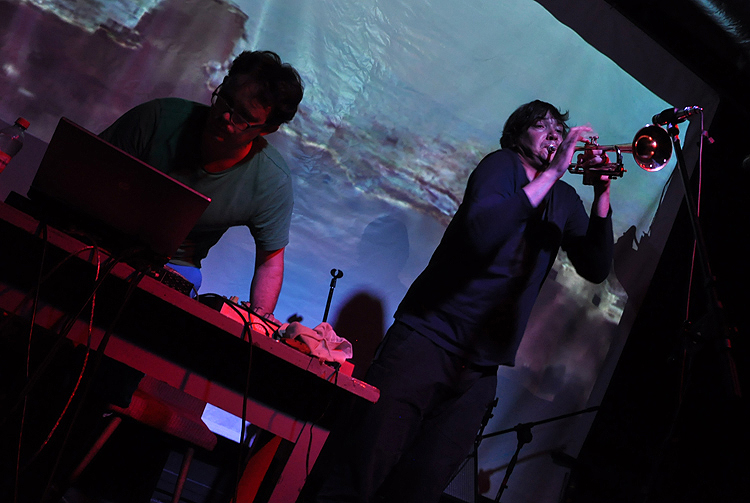 Narracja miała istotne znaczenie, zwłaszcza w kontekście koncertu Mszy Świętej w Altonie. 3/4 składu, zespół Kirk budował trzon kompozycji, w znikomym stopniu rytmiczny, a raczej mglisty, z dużą dozą przestrzennego ambientu, wspomaganego wgryzającą się, pełną pogłosów trąbką Olgierda Dokalskiego, loopowaną na żywo. Kirk poszerza znaczenie terminu „improwizacja“, którą zajmuje się wykorzystując całkowicie nie-improwizowane urządzenia: gramofony i komputer. W odsłonie z Altoną brzmienie dobrze wzbogacała gitara Wojciecha Kwapisińskiego, a raczej mikrodźwięki i interwencje, które muzyk tworzył bawiąc się możliwościami strun i modyfikując ich brzmienie, wykorzystując różne metalowe narzędzia. Ciekawych zabiegów na koncercie nie brakowało, jednak mało było spójnej, przemyślanej narracji i aktywnego dialgu między muzykami. W rezultacie set okazał się trochę rozwlekły i rozlazły, co niekoniecznie dobrze wpłynęło na jego odbiór.