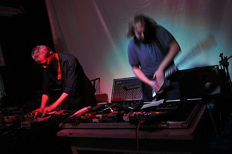 Po nim na scenie zainstalował się Kapital czyli nowy projekt Rafała Iwańskiego, współtwórcy Hati i X-Avi:Et oraz Kuby Ziołka znanego chociażby z Ed Wood czy swojego solowego projektu Stara Rzeka. Punktem wyjścia do ich muzyki są kompozycje kumulujące masę dźwięków, upakowanych w niezwykle gęstej formie na pograniczu hałasu i obezwładniających ścian dźwięku. Ziołek rozwija tu swoje fascynacje ambientem i drone music, które rozpoczął jako Stara Rzeka – opiera grę na brzmieniu gitary, podbitej masą efektów i zapętleń, tworząc hałaśliwą i gęstą warstwę brzmieniową. Iwański natomiast dodaje swoją bardziej eksperymentalną warstwę pełną loopów, modyfikacji dźwiękowych czy drobnych interwencji spowodowanych licznymi przeszkadzajkami. Efekt finalny wymaga dopracowania (w kilku momentach całość brzmiała zbyt chaotycznie i brakowało jej koordynacji), ale także przyłożenia większej uwagi do akustyki koncertu – podczas setu w Bajkonurze Iwański był zbyt często zagłuszany przez gitary Ziołka, na czym z ten występ znacząco ucierpiał.
