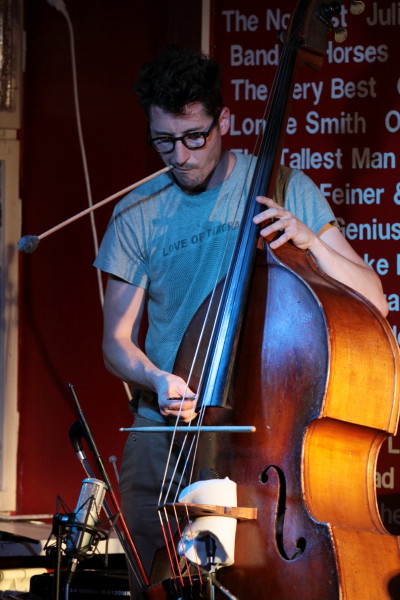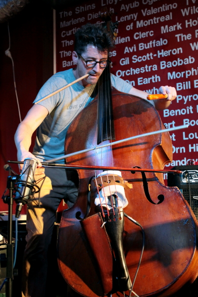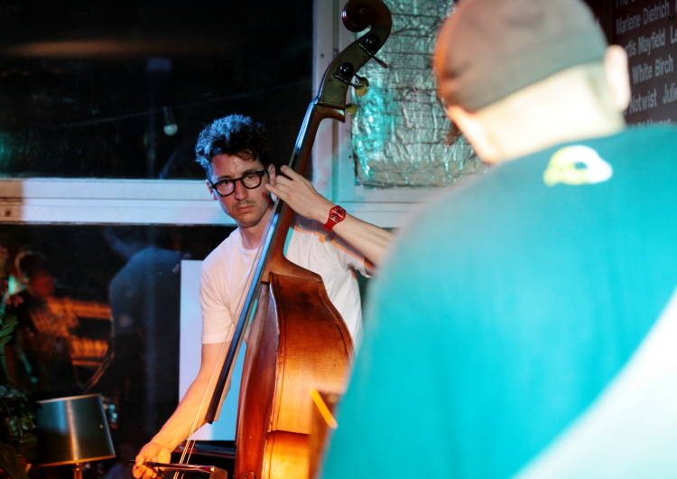 Kolejna odsłona cyklu "2 Nights with" w warszawskim Pardon To Tu przyniosła może mniej spektakularne, ale pod wieloma względami bardziej nieoczywiste zestawienie muzyków niż te przeszłe, z udziałem m.in. Joe McPhee i Michaela Zeranga albo Dave'a Rempisa i polskich muzyków jazzowych. LXMP to duet bądź co bądź niejazzowy i elektryczny, a Clayton Thomas to kontrabasista grający improv i jazz. Dla polskich muzyków ta współpraca była więc swoistym wyjściem poza własne terytorium i pierwszy dzień przyniósł ciekawe tego efekty, choć przez cały wieczór niejako prowadzone były one przez Thomasa. Australijczyk wieczór zaczął sam, grając na kontrabasie solo z wykorzystaniem przedmiotów różnych, mikrofonów chyba trzech i eksponując fascynujący, oryginalny i wszechstronny język. Thomas z jednej strony precyzyjnie i elokwentnie operuje detalami brzmienia, drganiem i płaszczyzną, z drugiej gra na kontrabasie niczym perkusista, tworząc samowystarczalne rytmicznie formy, które czasem brzmią raczej jak muzyka elektroniczna, a nie akustyczna. Po jego błyskotliwym występie solowym usłyszeliśmy duet Clayton Thomas / Macio Moretti (ten na perkusji). Unikając hałasu, panowie bardzo zgrabnie wymieniali się rytmicznymi i fakturowymi funkcjami, a artykulacyjna różnorodność Thomasa dobrze uzupełniała się z nieco punkowym, surowym style improwizacji Morettiego. Po krótkiej przerwie na scenie pojawił się duet Clayton Thomas / Piotr Zabrodzki - najtrudniejszy chyba. Początek, na kontrabas i gitarę basową, był mało przekonujący, rzeczy nabrały wyrazistości kiedy Zabrodzki sięgnął do syntezatora i wprowadził element dronu - wtedy muzycy prędko osiągnęli porozumienie w wysokich rejestrach, które poźniej stopniowo wybrzmiało w bardziej jazzowych wymianach instrumentów basowych.