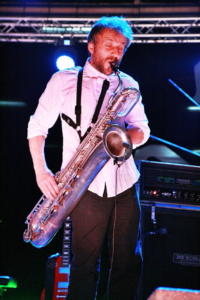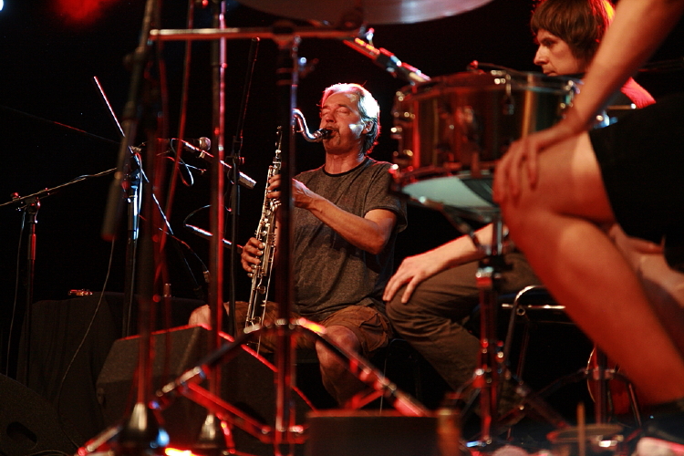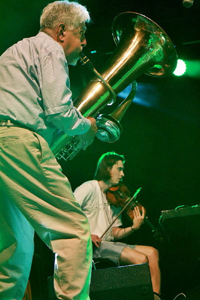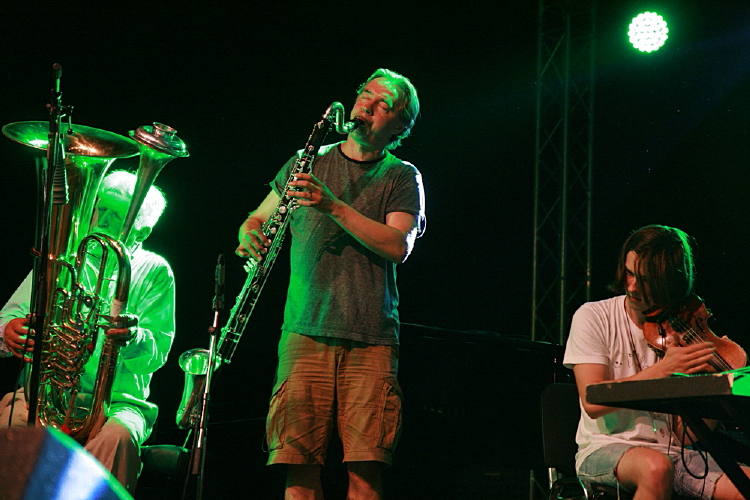 Dla fanów lekkiego i niezobowiązującego grania drugi koncert okazał się pewnie szokiem. Pierwotnie anonsowane trio Jerzego Mazzolla wystąpiło w kwartecie na klarnet skrzypce, gitarę i perkusję i w takiej konfiguracji grało przez dobre dwadzieścia minut, po czym skład uzupełnił tubista Zdzisław Piernik. Było w tej amorficznej, operującej dronami i budowanej z kapitalną dramaturgią muzyce wiele intrygującej, niedopowiedzianej aury, gdzie masywne partie tuby i basklarnetu, szorstką sonorystykę perkusji kontrowały gładsze brzmienia gitary i skrzypiec. Bardzo dobry koncert, gdzieś na styku swobodnej improwizacji i muzyki współczesnej, który pozostawił nieco niedosytu, bo w swej zasadniczej części zakończył się raptem po czterdziestu minutach. Na bis usłyszeliśmy ciekawy duet Mazzolla z Piernikiem, którym zaczynali partnerować kolejno pozostali muzycy.