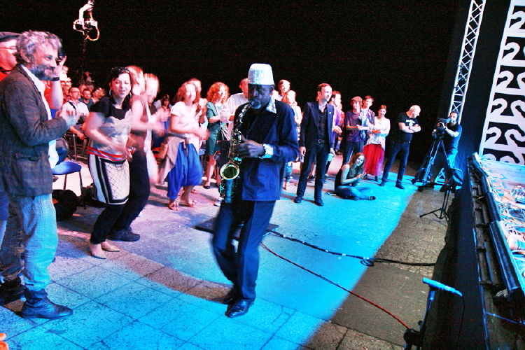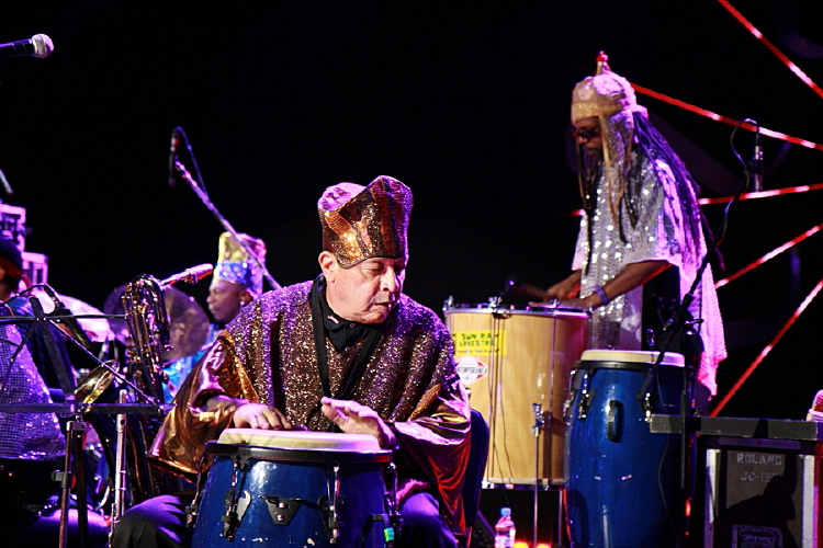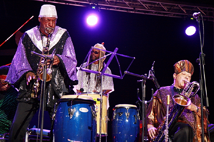 W podobnie licznym składzie zagrała gwiazda wieczoru, Sun Ra Arkestra. Tu zaskoczenia nie było, styl bandu dowodzonego przez Marshalla Allena znany jest powszechnie. I choć przyjdzie liderowi w przyszłym roku obchodzić już dziewięćdziesiąte urodziny, a w saksofon nie dmie on z taką mocą jak kiedyś, obraz orkiestry wciąż tworzy na swój sposób wyjątkowy. Jest może w tym wszystkim swoisty cyrk, z długimi szatami, cekinami, tańcami i fikołkami na scenie, ale czysto muzycznych wrażeń na szczęście nie zaciera, a samej kosmicznej legendy Sun Ra nie rozmienia na drobne. Przynajmniej w odczuciu tych, którzy obcują z nią na żywo pierwszy raz. Barwna, lekka, głęboko nasycona taneczną wibracją muzyka – stylistycznie nie do końca jednorodna, bo oprócz bliższych jazzowo-orkiestrowemu idiomowi utworów były i piosenki, i bardziej nieoczywiste struktury, ale złożyła się w spójną całość, spiętą zwłaszcza wyraźnym perkusyjnym pulsem. Sam koncert był niezły, choć nie porywający i pewnie mógłby trwać krócej. Opadające nieco napięcie muzycy na szczęście podtrzymali na sam koniec, wchodząc z instrumentami pomiędzy publiczność.