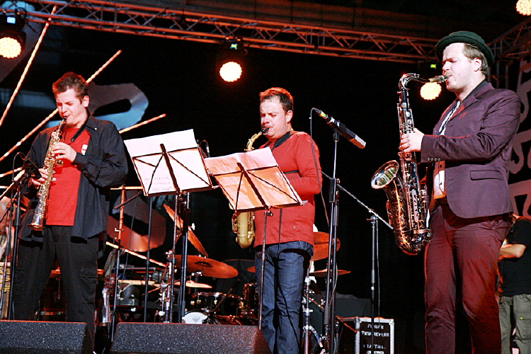 Drugi koncert, Power of the Horns pod wodzą Piotra Damasiewicza, zapowiedziany został jako punkt rywalizacji z główną gwiazdą wieczoru. Stwierdzenie trochę na wyrost, ale pewne cechy wspólne na pewno można dostrzec. Usłyszeliśmy cały materiał z mającego tego dnia premierę albumu Alaman - trzy długie kompozycje w wykonaniu jedenastoosobowej orkiestry zabrzmiały potężnie i świeżo. Mocy i rozmachu dodawały iście huraganowe partie sekcji dętej, a także podwójna sekcja rytmiczna wzbogacona perkusjonaliami. Rozbudowane kompozycje pozwoliły na stworzenie przestrzeni dla właściwie każdego z członków zespołu. Bardzo dobry koncert, trzymający w napięciu, dobrze balansujący między chwytliwymi, zadziornymi tematami a abstrakcją, zagrany z precyzją, ale też luzem i pewnością siebie. Szedłem na niego zupełnie w ciemno, nie wiedząc o zespole prawie nic – zaskoczenie więc tym większe, a płynące z wielu stron pochwały wydają się całkiem uzasadnione.