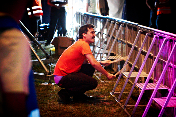 Pierwszego dnia ze względu na utrudnienia komunikacyjne spóźniliśmy się na koncert The Bots - duetu nastolatków mierzących się z punk-rockiem. Z relacji widzów nie był to porywający występ, niemniej jednak szkoda, bo pewnie zakręciłaby się nam łezka w oku. Przelotem zerknęliśmy na główną scenę gdzie dosyć dobry i znakomicie przyjęty koncert zagrało Kaiser Chiefs, było wesoło, przebojowo, w sam raz na rozkręcenie festiwalu. Występ N.O.H.A dość nas zaskoczył. Dotychczasowa amfiteatralna scena, skupiająca głównie muzykę folk, zamieniła się na scenę Red Bull - zaaranżowany dach autobusu, klaustrofobiczny, jeśli nie mamy do czynienia z DJskim setem lecz jak w przypadku N.O.H.A. zespołem, nie wspominając o zupełnym braku możliwości sfotografowania koncertu. Niemniej jednak występ grupy był znakomity, połączenie d'n'b, jungle, folk, dub przywodziło na myśl najlepsze dokonania Anima Sound System. Warto było posłuchać.