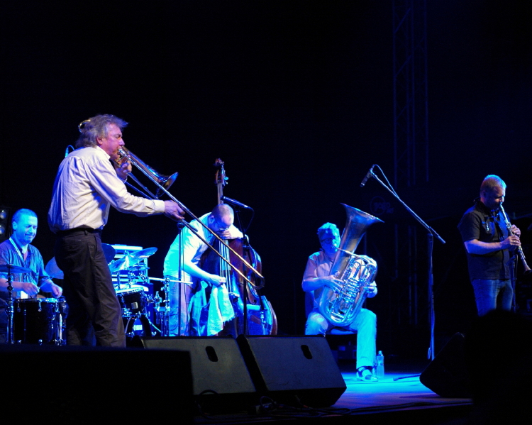Muzyka była powolna i masywna jak cielsko smoka, który ciężko stąpał na trzech rytmicznych nogach perkusji, kontrabasu i tuby. Skrzydłami smoka były puzon i saksofon. Paszczy nie było i smok nie ryczał, nie wył, ale zionął ogniem, który wydobywał się z dwóch skrzydeł. Przypominały się ludzkie smoki z czasów Miłości. Czarodzieje - jak nazwał ich ktoś z publiczności - dali ogromną przyjemność ze słuchania, może trochę wygładzonej, ale bogatej stylistycznie, pełnej niuansów i bardzo osobistej muzyki.