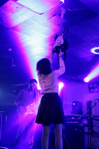 Wszystkie wymienione powyżej koncerty odbyły się przede wszystkim w sobotę i w mniejszym stopniu w piątek, co sprawiło, że niedziela była dość mdła, także za sprawą hiszpańskiego kontyngentu. Główną atrakcją był więc koncert Beak>, którzy przez ostatnie kilka lat z projektu zamienili się w zespół pełną gębą i zagrali świetnie – soczyście, z wyczuciem motorik i przestrzeni, z dźwiękowym detalem. Wyróżnił się też Adam Gnade, amerykański literat, który swoje teksty wykonywał z angielską grupą Youthmovies. Formuła spoken word przywodziła na myśl Enablers, oczywiście rzecz nie była tak dopracowana i intensywna, ale zdecydowanie była ciekawa i wciągająca. Dobry koncert de facto na otwarcie w piątek zagrali Magik Markers, choć pierwszy kwadrans był słaby i tragicznie nagłośniony. Później było dużo lepiej, Elisa Ambrogio wyprawiała z gitarą rzeczy coraz dziwniejsze, zarówno fizycznie, jak i dźwiękowo, co pozwalało przymknąć oko na jej stylizację rodem z modowego blogu. Ciekawostką był koncert Hebronix, projektu Daniela Blumberga, onegdaj wokalisty Yuck, teraz proponującego powolną, szarą muzykę na gitarę, chmury z syntezatora i głos – ciągle młodzieńczy. Wokalne pitu pitu i prościutkie operowanie fakturami nie pozwalają jednak nazwać tego koncertu czymś więcej niż ciekawostką. Umiarkowanie udaną ucieczkę od rocka zaprezentowała australijska grupa New War, która właśnie wydaje pierwszy album w ATP, choć wiekowo muzycy na debiutantów nie pasują. Gitarę zastąpiono syntezatorem i samplerem, dołożono dubowego delayu, jednak konstrukcje ciągle były rockowe i dość przeciętne. Za to skrajnie rockową ekspresję zaprezentowała grupa The Icarus Line i w ich przypadku to się sprawdziło. Co prawda wokalista miał kompleks Iggy’ego Popa i Nicka Cave’a na raz, a utwory były dość podobne do siebie, ale całość była na wysokich obrotach, głośna, ekspresyjna. Głośna i ekspresyjna chciała być też Margaret Chardiet aka Pharmakon, ale jej dwudziestominutowy występ był bardzo grubymi nićmi szyty. Nawiązania do noise’u ala Whitehouse w wykonaniu rozwrzeszczanej blondynki były swoistą prowokacją, ale ta wściekłość miała ciężar gatunkowy reakcji na zamknięcie ulubionego Starbucksa a nie konfrontacji, która kogokolwiek na sali zbiłaby z pantałyku. Na małej scenie zagrało też kilka popularnych około-elektronicznych projektów (Demdike Stare, Forest Swords, itd.), jednak udało mi się zobaczyć tylko The Haxan Cloak – w chmurach dymu i maksymalnie podkręconą głośnością Bobby Krlic atakował raz dolnymi, raz górnymi częstotliwościami, ale w sumie poza tymi atakami niewiele w głowie zostało.