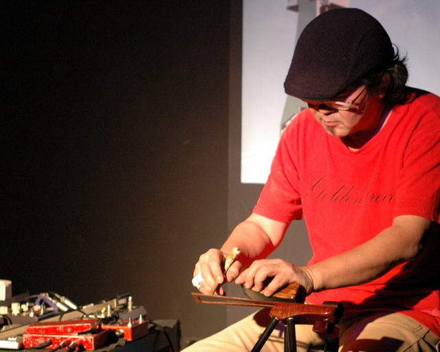 Podczas koncertu Kazuhisa grał na preparowanej gitarze oraz na daksofonie - instrumencie, w którym dźwięk powstaje na skutek przenoszenia drgań z drewnianych ostrzy na mikrofon kontaktowy. Koncert ukazał bardzo szerokie możliwości brzmieniowe tego instrumentu (chwilami wydawało się wręcz, że słyszy się śpiew Maji Ratkje!), ale stało się to kosztem spójności całego wystąpienia - po koncercie zastanawia jednak, czy nie było to przypadkiem zamierzeniem autora.