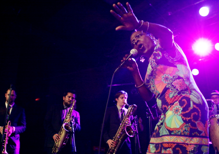 Patrząc na Sharon Jones na scenie trudno uwierzyć, że premiera Give the People What They Want była przesunięta o pół roku z powodu zdiagnozowanego u wokalistki raka – żywotność, siła i elastyczność jej wokalu są imponujące, choć krótkie włosy przypominają o dramacie sprzed niecałego roku. Występ Jones i dziesięcioosobowego składu the Dap-Kings, z Bosco Mannem w roli swoistego dyrygenta i Binky’m Griptite’m w roli quasi-konferansjera, to świetnie zaplanowany, ale ekspresyjnie wykonawy performans. Po pierwsze, stopniowe wejście w koncert instrumentalnym utworem i dwiema piosenkami zaśpiewanymi przez chórzystki, a potem jeden z największych hitów Sharon – „Stranger to My Happines” – jako pierwszy utwór przez nią zaśpiewany, po drugie umiejętnie skonstruowany set z kilkoma węzłowymi punktami – porcja utworów z nowej płyty mniej więcej w jednej trzeciej występu, stare przeboje (w tym „100 Days, 100 Nights”) mniej więcej w dwóch trzecich. Po trzecie, ciekawe rearanżacje, np. „Get Up and Get Out”, kiedy na początku w wolnych tempach Jones świetnie imitowała Tinę Turner, kowery (np. „Heard It Through the Grapevine” Marvina Gaye i rewelacyjna, daleka od oryginału wersja “This Land Is Your Land” na bis) i instrumentalne pasaże. Po czwarte, doskonały tzw. kontakt z publicznością, wliczając kilkukrotne zaproszenie tańczących ludzi na scenę, a raz przyjmujący formę zupełnie kuriozalnego wrzucenia stanika na scenę. Ale tak absurdalny moment nawet się przydał w koncercie o ewidentnie przemyślanym przebiegu. Brzmienie wielobarwne, aranżacje zachowujące bogactwo pomysłów z płyt. Jeśli czegoś więcej życzyłbym sobie na tym koncercie, to wibrafonu w „People Don't Get What They Deserve” i szybszego rozpoczęcia koncertu – godzinne oczekiwanie po zejściu ze sceny otwierającego wieczór Jamesa Huntera było przesadą. Ale to szczegóły – koncert wyraźnie pokazał, że Sharon jest wokalistką zjawiskową, a Dap-Kings zespołem doskonałym.