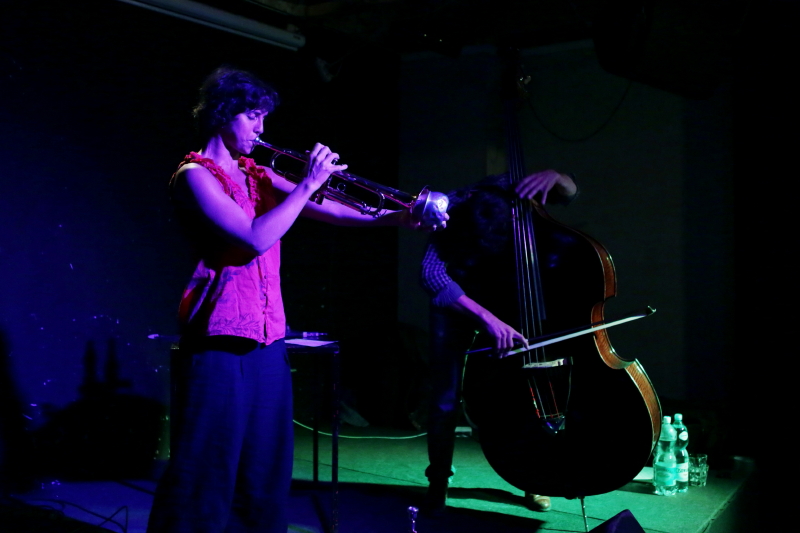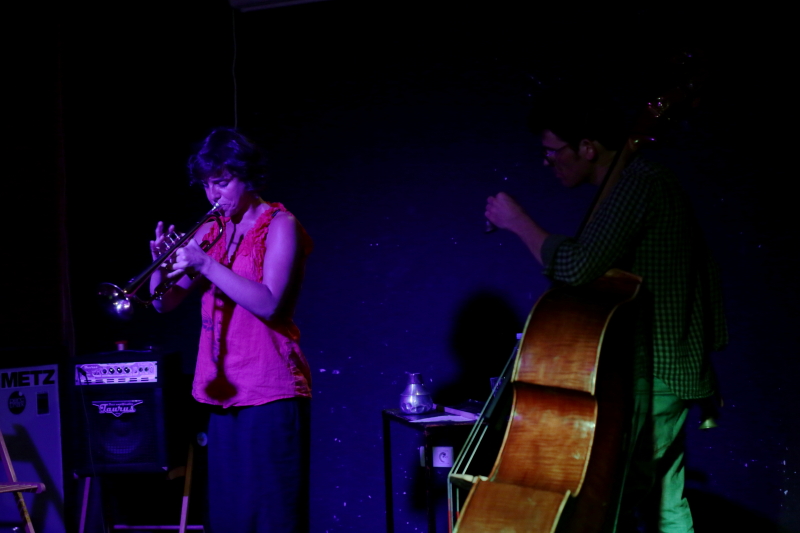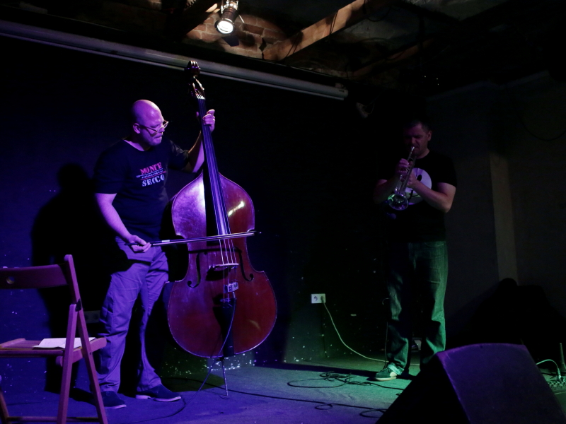 Wieczór z dwoma duetami na trąbkę i kontrabas otworzył premierowy występ duetu Wojciech Jachna & Ksawery Wójciński. Panowie nie grali jednak swobodnej improwizacji, przygotowali szkice strukturyzujące koncert w kilkuminotowe formy. Co było dobrym pomysłem - pojawiły się i dyskretne melodie, i elementy abstrakcji, a wykorzystanie loopstacji w ostatnim utworze dodało głębi brzmieniowemu pejzażowi. Cichy, skupiony, udany występ. Susana Santos Silva & Torbjörn Zetterberg (na jedynym koncercie w Polsce) byli tego wieczoru duetem bardziej awangardowym artykulacyjnie, choć nie eksponowali technicznych eksploracji do takiego stopnia jak na nagraniach dla Clean Feed czy we fragmentach koncertów, jakie można obejrzeć na yt. Za sprawą dzwonków i fujarki pojawiła się wręcz nuta etnicznego prymitywizmu. Nie był to może spektakularny koncert, ale ciekawy występ z improwizacją budowaną od strony emocji, a nie techniki.