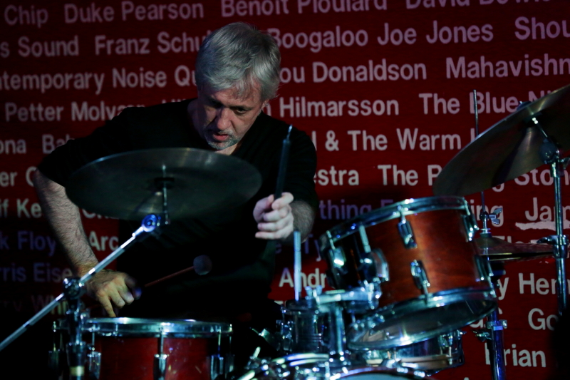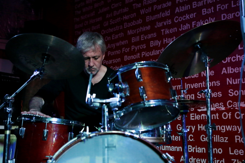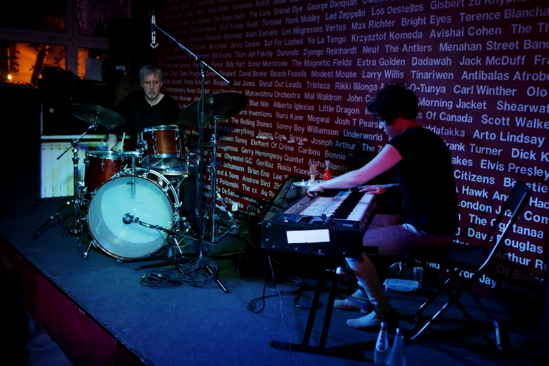 Od czasu kwietniowego PopUp festu Tony Buck pojawia się w Warszawie niemal regularnie i bardzo mnie to cieszy. Tym razem zagrał w duecie z Magdą Mayas aka Spill. To był ich drugi koncert w Warszawie, po ubiegłorocznym w Cafe Kulturalna. Ponownie uwagę zwracało niesamowite wykorzystanie przez Mayas klawinetu i wnętrza tego instrumentu, przybliżające brzmienie do gitarowego, oraz elastyczność i plastyczność gry Bucka. Ten koncert wydał mi się agresywniejszy niż ubiegłoroczny, choć nie zabrakło wyciszeń. Wrażenie było też nieco inne niż rok temu przez fakt, że widząc ich kolejny raz jest się mniej zdziwionym bogactwem dźwiękowego spektrum tworzonego przez duet, ale zarazem lepiej się dostrzega, że jego kilkuletnia już improwizowana twórczość ma bardzo naturalny sens.
