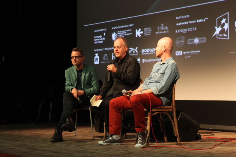 Środkową część wieczoru wypełniło ostatnie dzieło Jima Jarmuscha, na które publiczność festiwalowa przybyła tłumnie. „Tylko kochankowie przeżyją” jest filmem swoich czasów, wykorzystuje popkulturowy renesans postaci wampira i zestawia go z teatralną dekadencją współczesnej, hipsterskiej kultury indywidualizmu w formie neogotyckiego melodramtu. Wszystko zaprezentowane w typowo przewrotnym, niepodrabialnym stylu Jarmuscha. W filmie obok świetnej gry aktorskiej i znakomitych zdjęć niszczejącego Detroit elementem najbardziej charakterystycznym jest nagrodzona na Festiwalu w Cannes muzyka lutnisty Jozefa van Wissema, który zagrał na festiwalu solo bezpośrednio po projekcji filmu. Był to już trzeci raz kiedy miałem przyjemność słuchać występu Holendra, dlatego nie stanowił on dla mnie specjalnego zaskoczenia, które w przypadku niekonwencjonalnego instrumentu artysty często determinuje pierwsze reakcje na kontakt z tą muzyką. Twórczość van Wissema określiłbym jako skrajnie hermetyczną, opartą na minimalnych środkach wyrazu, dzięki którym muzykowi udaje się wykreować na koncercie prawdziwie unikatową, wzniosłą, a zarazem kameralną i melancholijną atmosferę. Dobra akustyka Sali Kina Orzeł i skupienie publiczności pozwoliło zaistnieć muzyce van Wissema w pełnej krasie.