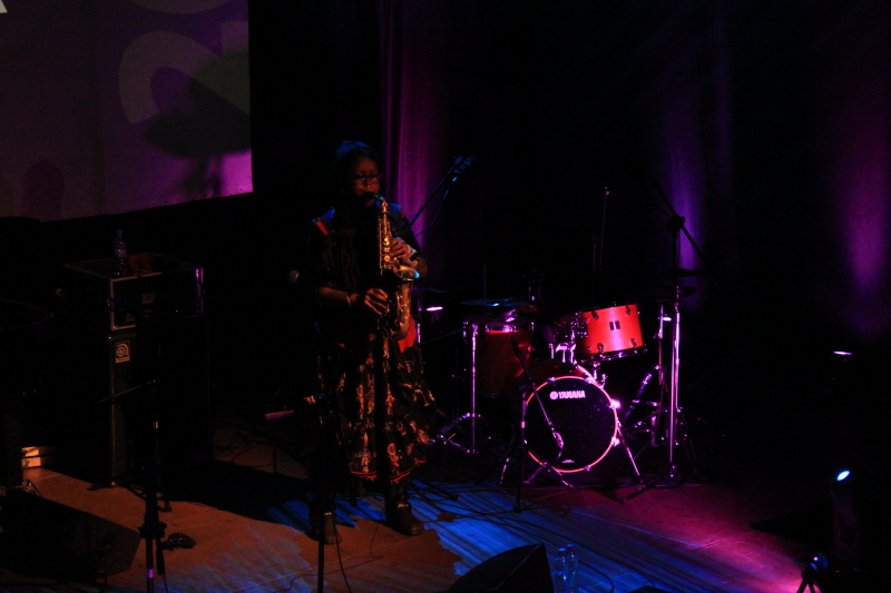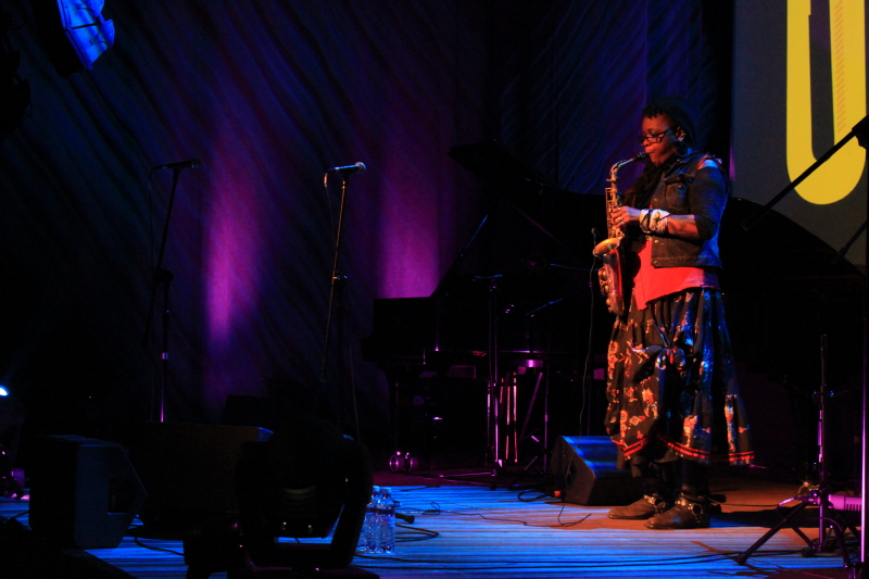 Trzeci dzień festiwalowy rozpoczął się do pewnego stopnia analogicznie do poprzedniego. Matanę Roberts z Colinem Stetsonem łączy upodobanie do spinania muzycznej treści w narracyjne formy o precyzyjnie zarysowanej koncepcyjnej strukturze. W odróżnieniu od Kanadyjczyka, Roberts po wydaniu dwóch albumów z tuzina, na jaki zakrojony został projekt Coin Coin, znajduje się dopiero na początku cyklu, choć oprócz tego może się pochwalić zdecydowanie bogatszym dorobkiem. Oprócz tego artyści wydali ostatnie albumy dla montrealskiego Constellation Records, czyli oficyny prezentującej muzykę bardziej eksperymentalną niż stricte jazzową. Niemniej solowy występ Matany Roberts był doświadczeniem zupełnie innym niż spotkanie z muzyką Stetsona. Artystka od samego początku podeszła do sytuacji festiwalowej z bardzo dużą dozą luzu i otwartości na publiczność, dzięki czemu skutecznie przełamała barierę komunikacyjną wynikającą z konwencji występu festiwalowego. Ciężko postrzegać koncert saksofonistki w oderwaniu od licznych anegdot, historii mniej lub bardziej osobistych, którymi przeplatała momenty swobodnej i również dość dygresyjnej, nieprzewidywalnej improwizacji. Połączenie muzyki i opowieści, narracji, czyli synteza, która w twórczości saksofonistki pełni od kilku lat rolę szczególną, objawiła się na dużym festiwalu jazzowym w formie kameralnej, a przy tym ultra-naturalnej, kontrastującej z dopracowanymi koncept-albumami, pełnymi aranżacyjnego rozmachu. Na koncercie odniosłem wrażenie, że Matana jest w równej mierze gawędziarką, co saksofonistką, a momentami nawet bardziej chciałem posłuchać jej kolejnej opowieści niż muzyki. Innym razem dźwięki altu były na tyle sugestywne, że nadawały całości niepowtarzalnego klimatu, jakby kontynuowały anegdoty językiem muzyki. Z całą pewnością na długo zapamiętam „zaprogramowanie” publiczności przez Matanę do wydawania jednego dźwięku, pomruku, który artystka wywoływała dając sali znaki saksofonem, by następnie improwizować na tle tak skonstruowanego „żywego podkładu”.