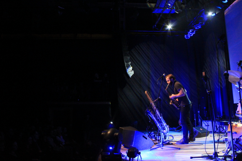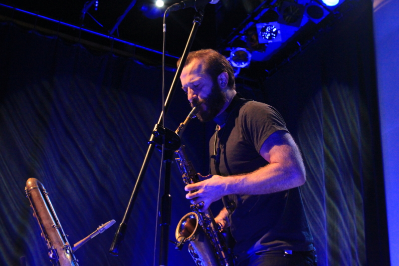 Piątkowy wieczór Jazz Jantaru otworzył koncert Colina Stetsona - saksofonisty, który przebojem przedostał się do szerszej świadomości wraz z albumem New History Warfare Vol.2: Judges sprzed 3 lat. Był to już kolejny raz, kiedy mogłem w tym roku zobaczyć Stetsona na żywo i trochę obawiałem się, że otrzymam powtórkę z rozrywki. Szczęśliwie okazało się, że siła rażenia solowego występu saksofonisty nie wyczerpuje się na jednorazowym doświadczeniu. Artysta „zaatakował” publiczność Żaka przeszywającym brzmieniem altu i momentalnie skupił na sobie pełnię uwagi, zmuszając do śledzenia każdego najdrobniejszego niuansu. Muzyka Stetsona to przede wszystkim precyzyjnie nakreślone kompozycje, jednak to moc brzmienia i szerokie spektrum sonicznych szczegółów decydują o finalnym, spektakularnym rezultacie. Wirtuozeria i warunki fizyczne pozwalają muzykowi na tworzenie złożonych, pulsujących struktur, a charakterystyczne motywy melodyczne pozostają w głowie jeszcze na długo po koncercie. Nadmorski, jesienny kontekst doskonale komponował się z klimatem muzyki Kanadyjczyka, niosącej ze sobą duże pokłady mroźnej melancholii. Było to dojmujące w szczególności, gdy dochodził do głosu saksofon basowy o głębinowym, noise’owo industrialnym brzmieniu.