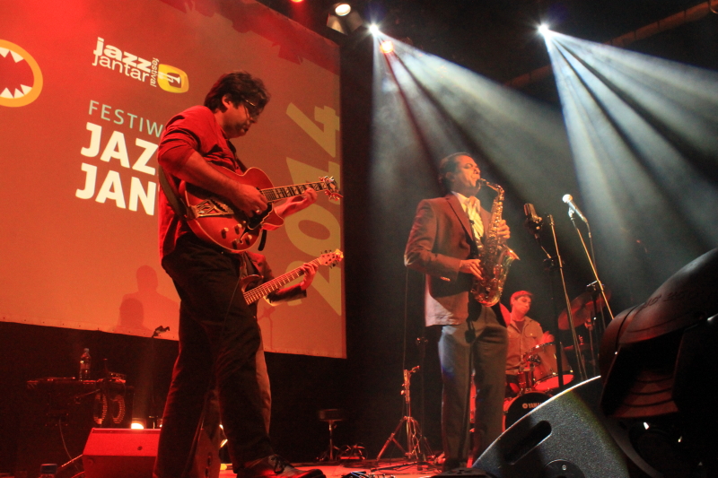Po entuzjastycznym przyjęciu Stetsona nie zazdrościłem wejścia na scenę kolejnemu wykonawcy, czyli amerykańskiemu saksofoniście indyjskiego pochodzenia Rudreshowi Mahanthappie z zespołem. Przyznam się szczerze, że estetyka prezentowana przez artystę troszeczkę rozmija się z moimi upodobaniami, ale paradoksalnie byłem ciekaw tego występu nawet bardziej niż koncertu Stetsona, którego muzykę znam dobrze. Kwartet Mahanthappy przedstawił program oparty głównie na repertuarze z zeszłorocznej płyty Gamak, chociaż oprócz lidera na Jazz Jantarze nie zagrał żaden z muzyków biorących udział w sesji albumowej. Skład saksofon altowy, gitara elektryczna, basowa i perkusja balansował pomiędzy tradycyjnym jazzem, bluesem, orientalnymi wpływami a prog rockową energią. Koncert miał dość skonwencjonalizowaną dramaturgię z czytelnymi wejściami solistów. Dominowały dialogi na linii Mahanthappa – Rez Abassi. Najbardziej podobało mi się, gdy gitara schodziła na dalszy plan podkreślając brzmienie altu lidera, dając mu swobodę improwizacji na tle stabilnej, mocnej sekcji. Ciekawie wypadł fragment, w którym Abassi zagrał misterne gitarowe solo przywodzące trochę na myśl wręcz bachowe polifonie. Ogólnie rzecz biorąc koncert miał swoje mocne strony – tutaj mam na myśli głównie kolektywny groove z energetycznymi przesileniami saksofonu – jednak momentami rozmywał się w przydługich, nazbyt wystudiowanych popisach bliższych bluesowym jam session. Chociaż nie była to muzyka, której słuchałbym w domu, to mimo wszystko w sytuacji koncertowej broniła się bardzo dobrym wykonaniem, a muzykom nie można było odmówić zaangażowania. Ostatecznie mogę określić występ jako satysfakcjonujący, ale raczej nie utkwi na dłużej w mojej pamięci. Mahanthappa był rodzajem programowego i stylistycznego kontrapunktu dla Stetsona i być może odwrotna kolejność koncertów wpłynęłaby korzystnie na ich finalną recepcję.