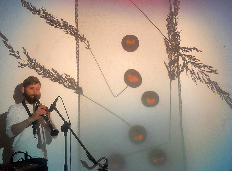 Stosunkowo rzadko elektronikę bazującą na dźwiękach elektroakustycznych i nagraniach terenowych artyści są w stanie w ciekawy sposób zaprezentować na żywo. W przypadku Flory Quartet jest to jednak zaledwie jeden z elementów składowych - pozostałe to Piotr Janiec grający na tubie i Tomek Stawiecki na klarnetach. Na żywo dochodzą także wizualizacje diaskopowe Małgorzaty Wawro, które w przypadku płyty praktycznie nie istnieją, trochę są wyeksponowane na okładce. Kwartet właśnie w sytuacji koncertowej zyskał moc i pełen wydźwięk. Było w ich występie miejsce na subtelne nagrania terenowe, okazjonalnie dodawane, nienarzucające się loopy i bity, które fantastycznie łączyły się z dialogującymi dęciakami. Te wprowadzały koloryt zazwyczaj długimi, dronowymi wstęgami, chociaż muzycy czasem zarysowywali szczątkowe melodie. Emiter część z tego co grali, zapętlał, wzmacniał instrumenty pogłosem lub innymi efektami, dodając temu co działo się na scenie głębi i efektownie rozwijając narrację. Był to materiał z płyty, ale na żywo wciągał o wiele bardziej także dzięki temu, że ta dosyć subtelna muzyka powstawała na żywo, dzięki współpracy całego zespołu. Barwne wizualizacje, z kawałkami roślin, bez użycia komputera, wzmocniły wydźwięk koncertu dodając mu niesamowitego nastroju.