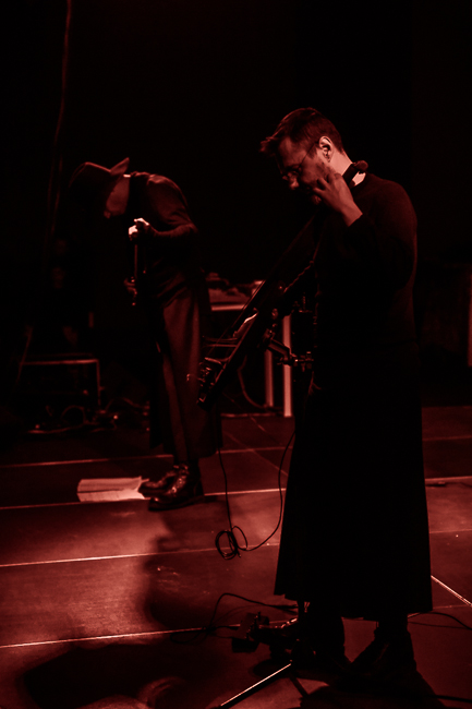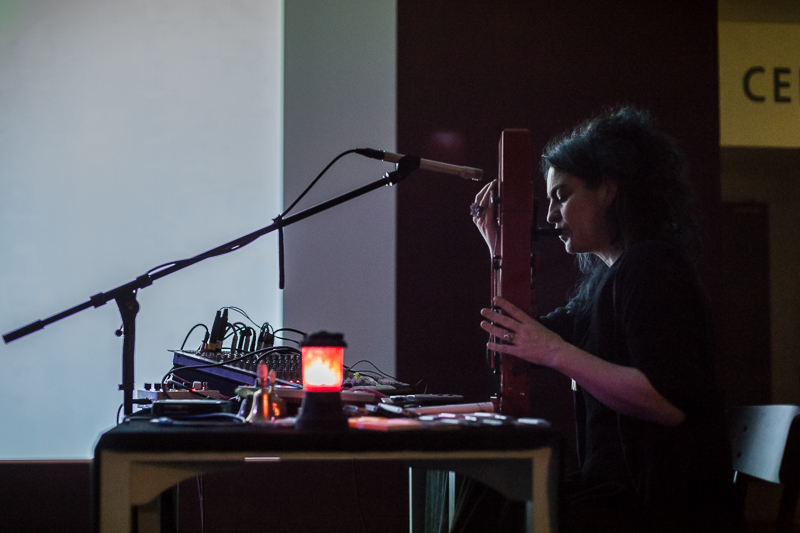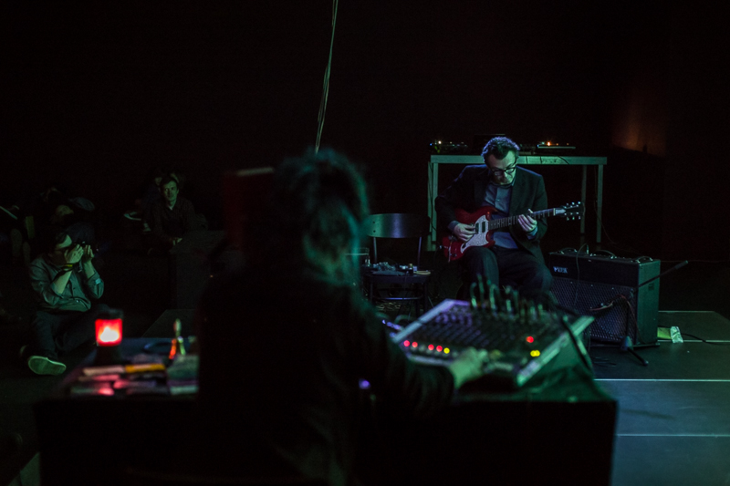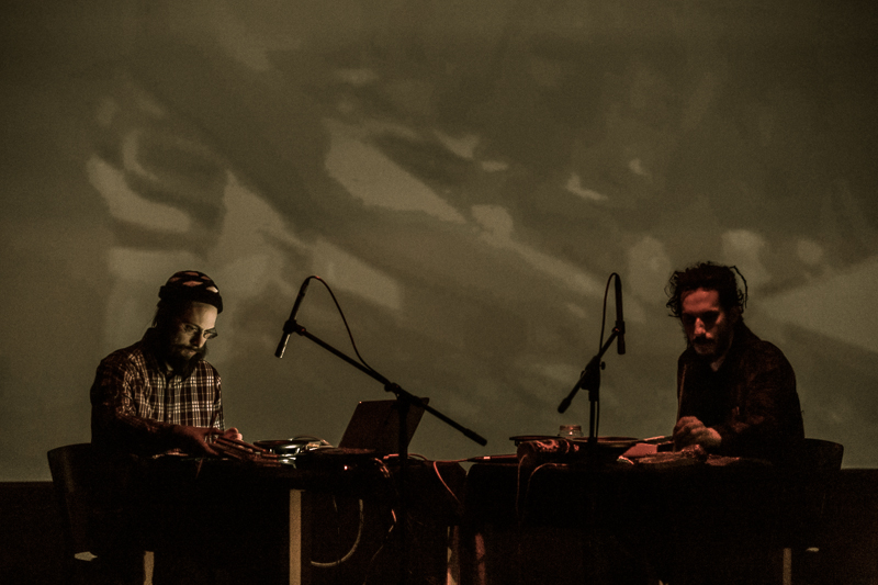 Dwa środkowe koncerty sobotniego wieczoru zagrały improwizujące duety o eksperymentalnym instrumentarium. Szwajcarski duet Diatribes amplifikował akustyczne odgłosy i delikatnie podlewał je elektroniką, tworząc snującą się, incydentalnie pulsującą formę. Cichą, wręcz ascetyczną o przewrotnym aspekcie performansu, który choć muzycy pozostawali bez ruchu, odbywał się gdzieś na stole przed nimi. Niezły koncert, ale przyćmiony przez te następny, jaki dali Angélica Castelló i Burkhard Stangl. W ich przypadku kluczowe było połączenie enigmatycznych źródeł dźwięku tworzonego przez Castelló z gitarowymi eksploracjami Stangla. Duet unikał przegadania, raczej był zwięzły w gestach i też dość cichy, ale jeśli chodzi o umiejętność połączenia sonorystycznych ekwilibrystyk z atrakcyjnością dźwiękowego planu, balansu między znaczeniem poszczególnych sytuacji a szerszą narracją, zagrał najlepszy z improwizowanych koncertów weekendu. W przerwach między tymi koncertami grał Avtomat, ale dla mnie idea przerwy polega na zrobieniu przerwy, więc niestety nic z jego występów nie zarejestrowałem.