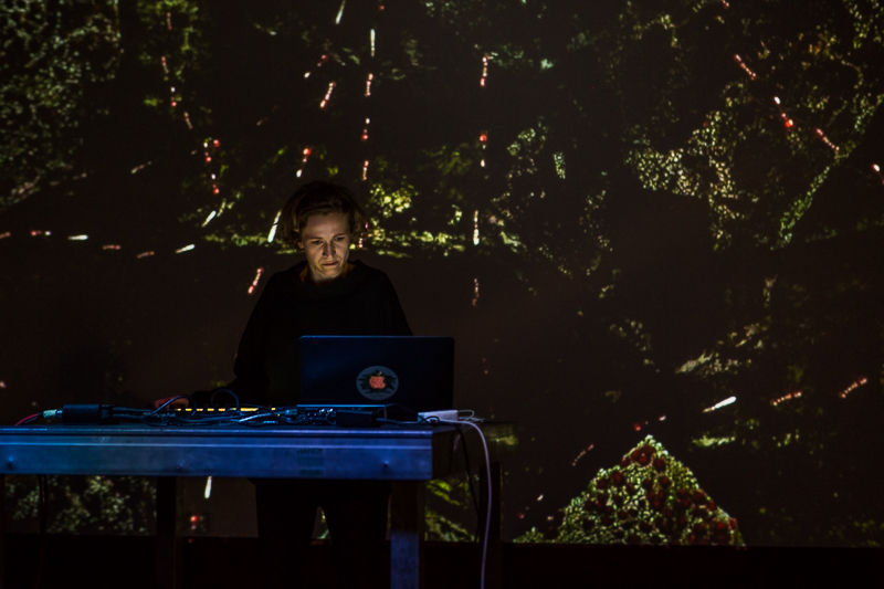 Drugi, generalnie cichszy dzień, przyniósł elektronikę na początek i koniec, oraz elektryczno-akustyczne improwizacje w środku. Przyniósł też sporo wizualizacji, może nadchodzi ich renesans po przesycie kilka lat temu? Elektronikę zaserwowały kobiety. Na początek zagrała Joanna Szumacher, której wcześniej nie miałem okazji usłyszeć. Nie przypominam też sobie, kiedy poprzednio na CoCArcie widziałem laptopowy występ. Szumacher zagrała muzykę przyjemną, ale bez szczególnych właściwości. Rytmicznie, brzmieniowo, melodycznie, kompozycyjnie była to muzyka czytelna, a ascetyczne wizualizacje z jakieś gry z epoki (jak sądzę) Atari czy C64 tworzyły wręcz przesadnie narzucający się kontekst. Zamykającemu wieczór koncertowi We Will Fail towarzyszyły za to zaskakująco barwne wizualizacje, swoiste martwe natury, roślinno-zwierzęce mozaiki. Było to nieoczekiwane tło do miarowo kroczącej, podszytej niepokojem i skupionej muzyki Aleksandry Grünholz. Jak wiadomo, do techno się kurde nie siedzi, ale w tym przypadku We Will Fail raczej naruszała granicę taneczności niż ją jawnie przekraczała, a dobre nagłośnienie podkreśliło świetne ułożenie dźwięków i, nomen omen, barw.