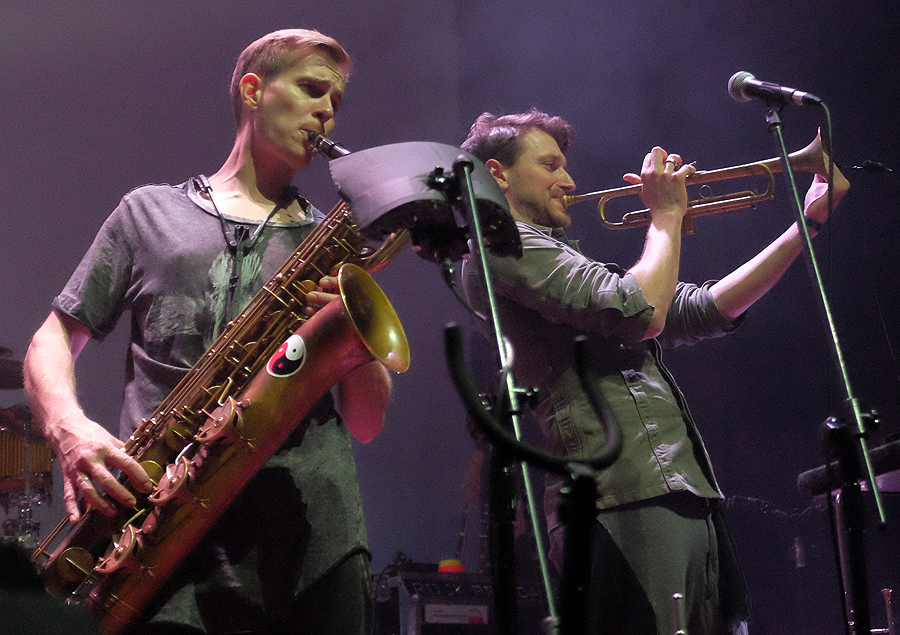 Zaskoczeniem okazała się Reni Jusis w Blue Note, zwłaszcza z perspektywy muzyki o której piszemy w Popup. Sęk w tym, że artystka, do tej pory znana z hitów pokroju „Zakręcona” czy „Nigdy Ciebie nie zapomnę” zrobiła coś, co przed dwoma laty poczyniła Neneh Cherry, nagrywając album z Rocketnumbernine. Podobnie jak Szwedka Reni niemalże odcięła się od swojej starszej twórczości, na scenę zaprosiła dwóch młodych muzyków – Stendka, który jej płytę wyprodukował oraz Jacka Prościńskiego, który na akustycznej i elektronicznej perkusji sprawdza się rewelacyjnie. Efektem jest muzyka elektroniczna, pulsująca, pełna syntezatorowych brzmień i połamanej rytmiki, żywa a jednocześnie organiczna. Doskonały koncert, który w połączeniu z kostiumami i wizualizacjami pokazał, że można stworzyć całą koncepcję na to jak zaprezentować się na żywo.
