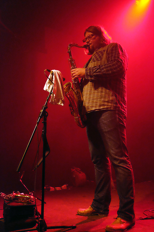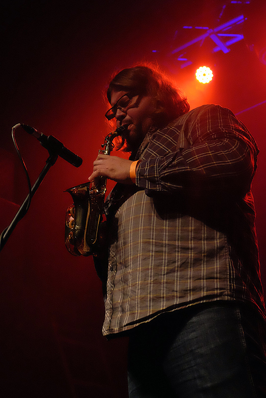 Olbrzym i Kurdupel zagrali koncert zgoła odmienny i wydaje mi się, że lepiej byłoby gdyby pojawili się na scenie jako pierwsi. Ich free-jazzowe wycieczki były bardziej zwarte, rozedrgane i jednocześnie wyczerpujące. Tomek Gadecki snuł frazy na saksofonie altowym także w miniaturkowej odsłonie instrumentu. Natomiast Marcin Bożek na basie tworzył raczej dość swobodne pasma, pociągając za struny, a czasem uciekając w drobny sonoryzm. Tutaj ciężko było odpłynąć jak przy Lotto, a występ cały czas trzymał w napięciu, dzięki wartkim zwrotom akcji i dźwiękowym niuansom. Kolejność setów jednak o wiele lepiej wpłynęłaby na jego odbiór.