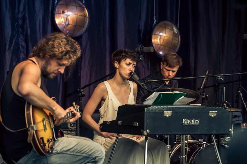 Mam ambiwalenty stosunek do plenerowych, letnich koncertów. Z jednej strony, to fajna odmiana i możliwość doświadczenia muzyki w nieco innej sytuacji niż zazwyczaj. Z drugiej strony, w Warszawie te koncerty często przyjmują charakter, powiedzmy, grania do leżakowania, są często cichsze niż powinny, a 30 upał nie sprzyja koncentracji. Więc szczerze mówiąc wolałbym, żeby pierwszy koncert Shy Albatross po premierze płyty (i pierwszy jaki w ogóle widziałem) odbył się w bardziej konwencjonalnych warunkach, niż dziedziniec NInA o 19. Ale cieszę się też, że na tym koncercie byłem, bo Woman Blue to świetny materiał, który na żywo zabrzmiał bardzo dobrze. Kilka lat temu Raphael Rogiński incydentalnie mierzył się publicznie z piosenkami. Teraz jego wariacje na temat amerykańskiej tradycji to już odrębny, może nawet pierwszoplanowy nurt działalności tego gitarzysty, który z Shy Albatross przyniósł zarazem mój ulubiony projekt Natalii Przybysz. Hubert Zemler i Miłosz Pękala w roli quasi-sekcji rytmicznej to świetny pomysł - rytm i puls, echa minimalizmu, ludowość przeplatająca się z abstrakcją. Materiał z płyty uzupełniły trzy kowery - dwa Niny Simone oraz "Indian Summer" The Doors. To był bardzo dobry koncert, doskonale zagrany, ale szkoda trochę, że z nagłośnieniem nadmiernie udelikatniającym brzmienie, w gorącu nieco piknikowym.