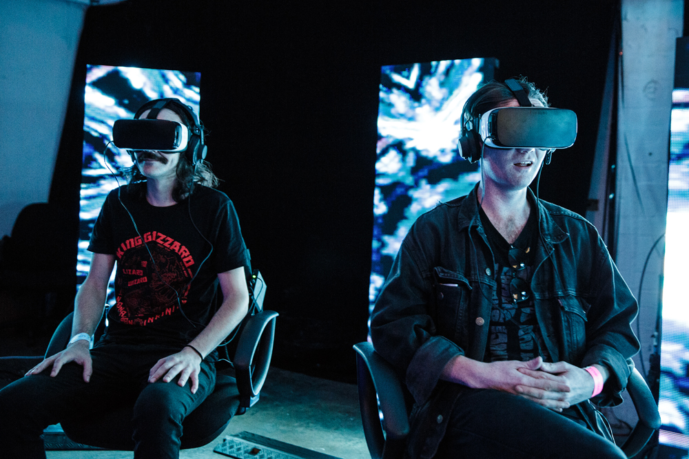 PZYK-owi udało się tego ostatniego uniknąć, choć gdyby trwał jeszcze jeden dzień, pewnie czekałby mnie miesięczny odwyk od przesterowanych gitar i krautrockowej perkusji. Organizatorzy zapewnili też możliwość oddechu na terenie samego festiwalu: w ramach przerwy można było zobaczyć instalacje wizualne w galerii na piętrze albo przetestować któryś z trzech symulatorów VR (z zewnątrz wygląda się co prawda jak głąb, ale można się poświęcić, żeby znaleźć się w środku gry komputerowej jak z lat 90., tyle że z lepszą muzyką i kosmicznymi grafikami). Kolejny egzotyczny akcent to rozmowa ze Steve’em Davisem, utytułowanym snookerzystą i miłośnikiem psychodelicznych brzmień, który przeżywa obecnie drugą młodość, grając z winyli.