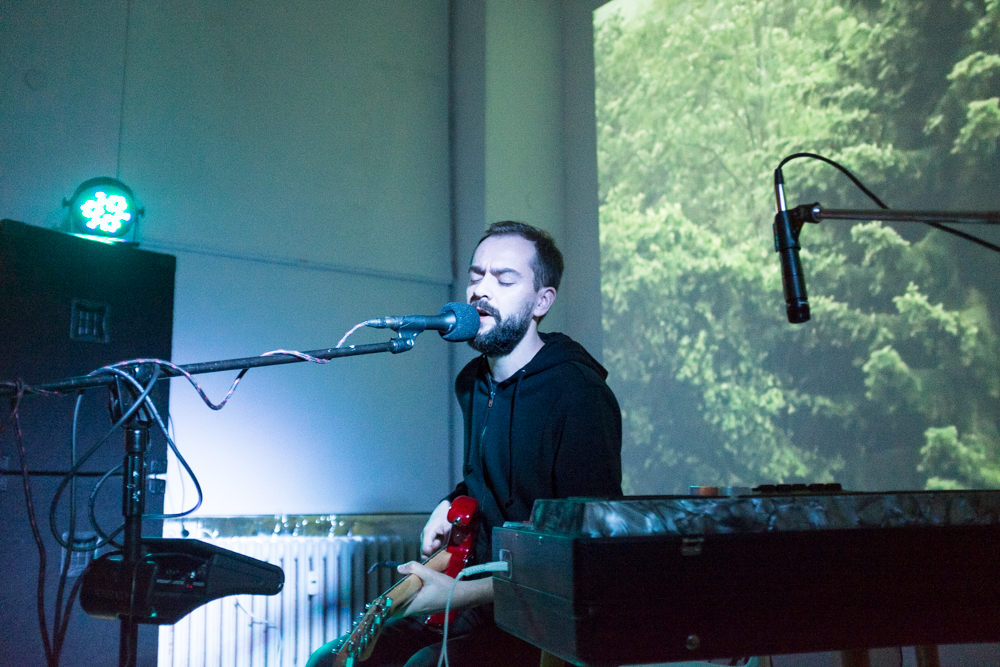 Ciekawe są losy muzyków zespołu How How, który chwilowo (mam nadzieję) przeżywa hibernację. O ile Miron Grzegorkiewicz realizuje swoje pomysły z JAAA! o tyle drugi z muzyków, Mateusz Franczak tworzy w pojedynkę oniryczne, instrumentalne, ale czasem też zniuansowane wokalem kompozycje. W Kolonii Artystów zaprezentował materiał z albumu „long story short”, a w zasadzie dosyć swobodne interpretacje utworów, które się na nim znalazły. Muzyce gitarzysty blisko do rodzimej formacji, chociaż więcej tu impresjonistycznych form, udanych gitarowych zapętleń czy delikatnie zarysowanych melodii. Budują one spójny, trochę bajkowy klimat, podbity grą na klawiszach, w tym przypadku o brzmieniowym kolorycie akordeonu. Całość wsparta jednostajną wizualizacją w tle zabrzmiała bardzo wciągająco i klimatycznie. Szkoda tylko tych przerw z oklaskami pomiędzy utworami, które bardzo rozstrajały odbiór muzyki, jako jedna i długa forma sprawdziłoby się to o wiele lepiej.