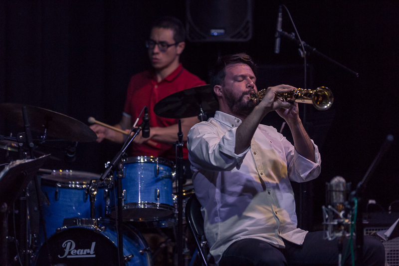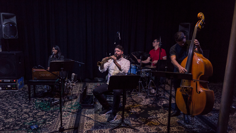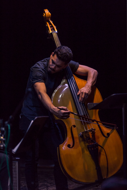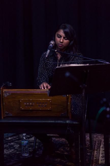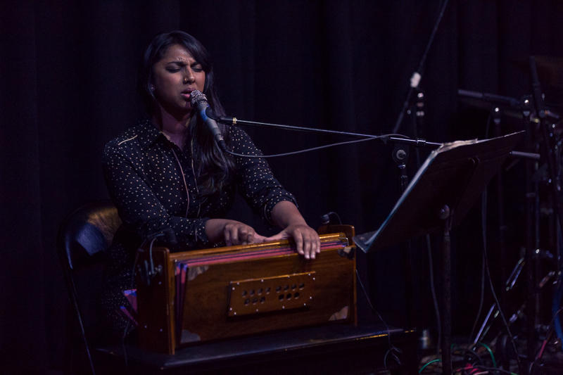 Drugi koncert, w poniedziałek 7 listopada, zagrał zespół Elder Ones pod przywództwem Amirthy Kidambi. To nowy nowojorski skład, ich płyta Holy Science ukaże się niebawem w Northern Spy - które jest z nami zaprzyjaźnione, więc miałem okazję go posłuchać wcześniej. To bardzo dobry materiał i taki też był koncert, na którym oprócz czterech utworów z płyty pojawił się jeszcze jeden. Amirtha grała na harmonium i śpiewała (czasem tekst, czasem raczej mantry, czasem wokalizy i onomatopeje), a męska część zespołu operowała głównie w jazzowym idiomie. Utwory były skomponowane i to było bardzo trafne, pozwalało połączyć ekstatyczność treści ze zwartością formy. Jest w ich muzyce duch Alice Coltrane i Johna Coltrane, ze współczesnych twórców przychodzi na myśl Matana Roberts i Fire Orchestra. Ale to odniesienia jedynie porządkujące, a nie definiujące. Świetny, oryginalny koncert.