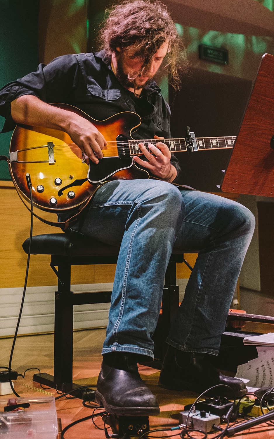 Pretekstem dla pierwszego była świeżo wydana płyta Raphaela Rogińskiego, na której gra utwory Henry’ego Purcella i Alfonso Ferrabosco. W studiu Władysława Szpilmana zaprezentował kompozycje właśnie tych twórców, ale cofnął się też do Coltrane’a, Bacha czy pieśni kurpiowskich. Sęk w tym, że Rogiński przez wiele lat wypracował sobie na tyle charakterystyczny styl, że inkorporując dzieła wielu twórców, zręcznie filtruje ich przez swoją wrażliwość i muzyczny język. Ukazane w przekroju kontemplacyjne melodie zyskały wspólny mianownik, w utworach Purcella zabarwiony o wokal Olgi Mysłowskiej. Bez syntezatora, jak na płycie, nie miały tak mrocznego i posępnego charakteru, ale zabrzmiały wyraziście i wręcz nabożnie. Zaryzykowałbym stwierdzenie, że Mysłowska za sprawą swojego dostojnego i “operowego” głosu najmocniej z dotychczasowych wokalistek wpływa na muzykę gitarzysty. Polecam sprawdzić to na płycie.