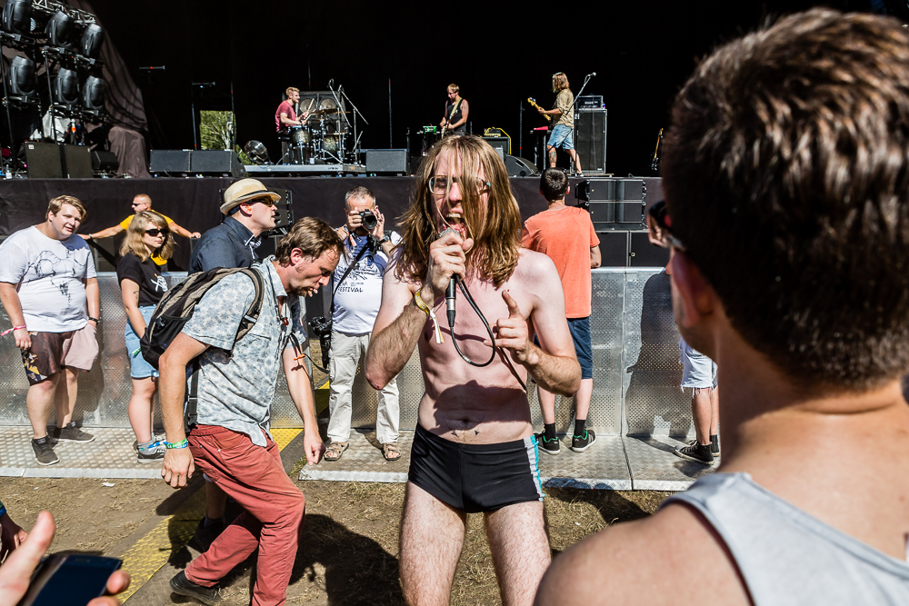 Nieporozumieniem był jednak koncert The Men – nie dość, że kiepsko nagłośniony, to jeszcze strasznie przewidywalny i wtórny. Brakowało w nim intensywności i żywiołowości, którą dwa dni później pokazali Thee Oh Sees. W pewnym momencie można było nawet odnieść wrażenie, że ogląda się przeciętnej jakości kower band The Stooges. Rozczarowaniem okazał się też występ strasznie promowanej na piczforku Frankie Cosmos. Krótkie i chwytliwe dream-popowe piosenki zespołu Grety Kline zaczęły po dwudziestu minutach razić schematycznością i brakiem polotu. Nic dziwnego, skoro każda piosenka powstawała w oparciu o tę samą strukturę, a konwencja lo-fi zdawała się wymuszoną. Bez jakiegokolwiek rozbudowania studyjnych wersji utworów i nieprzewidywalności, Frankie Cosmos pomysłów starczyło na dwadzieścia minut przyjemnego, lecz mocno ckliwego grania. Swoje trzydzieści minut bardzo dobrze wykorzystał za to zespół Duży Jack. Panowie zagrali naprawdę żywiołowo, zabrzmieli mocno, w rozchełstanie a la Refused i shellacowe riffy na gitarze barytonowej wrzucając wystarczająco gitarowych niespodzianek i scenicznego performansu, żeby utrzymać (nomen omen) temperaturę przez cały występ.