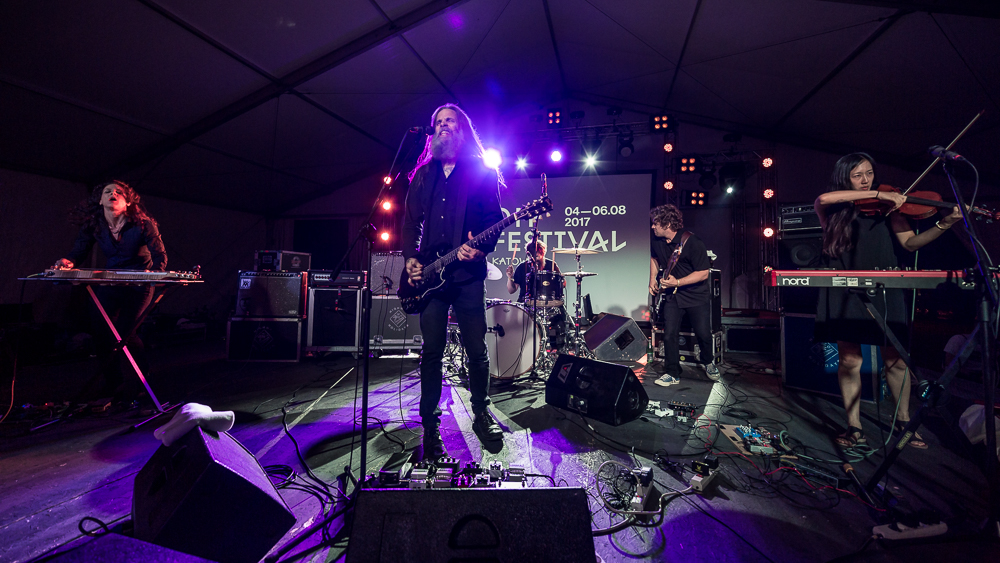 Ciekawych gitar było na tegorocznym Off naprawdę dużo. Doskonały koncert zagrali Thee Oh Sees. Jeśli przed koncertem ktoś miał wątpliwości czy forma garażówki, którą oferuje kapela z San Francisco nie jest już za bardzo oklepana, to formacja dowodzona przez Johna Dwyera udowodniła, że na żywo są zdecydowanie lepszym zespołem i potrafią przekuć studyjny materiał w szaleńcze show. Szczególny podziw budziła intensywność gry i technika dwóch perkusistów: Dana Rincona i Paula Quattrone. Kapitalnie w Katowicach wypadły pełne fuzzu „Toe Cutter/Thumb Buster” oraz zagrane w morderczym tempie „The Dream” i „Withered Hand”. Obok Shellac był to jeden z najbardziej energetycznych i intensywnych koncertów tegorocznej edycji. Bardzo dobry koncert zagrali też Kanadyjczycy z Preoccupations. Występ zaczęli od niezłego „Anxiety” a następnie zagrali świetnie brzmiące „Continental Shelf”. Istniało ryzyko, że po dwóch najbardziej „rozpoznawalnych” kawałkach tempo i atmosfera w trójkowym namiocie siądzie. Okazało się jednak, że było to dobrze zaplanowane posunięcie, bowiem początkowe post-punkowe brzmienie powoli przechodziło w rozbudowaną o liczne efekty noisową strukturę, której przewodził grający na perkusji Mike Wallace. Dzięki temu przez godzinę mogliśmy słuchać bardzo równego i dobrze budującego napięcie koncertu, którego znakomitym zakończeniem okazało się być rozciągnięte do ponad piętnastu minut „Death” z pierwszego albumu Kanadyjczyków. Po doskonałych koncertach Protomartyr i Ought na wcześniejszych edycjach Offa, Preoccupations także nie zawiedli post-punkowej publiki.