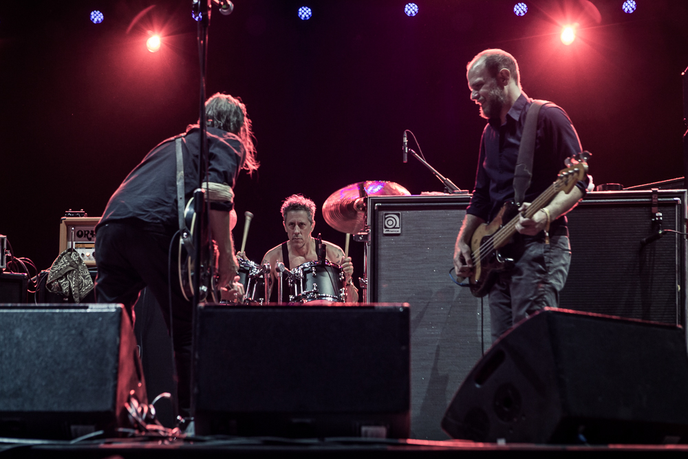 Mało już zostało zespołów z lat 90., które się nie reaktywowały a mogą to zrobić. Royal Trux jest jednym z ostatnich w tym trendzie. Grupa w Polsce kultowego statusu raczej nie ma, więc tłumów na ich koncercie nie było. Ta muzyka zawsze była nasączona używkami i koncert też sprawiał takie wrażenie, mimo mroku na scenie. Był nierówny, ale poprawiał się z czasem – może dzięki kilku bardziej znanym numerom w środku, może dzięki temu, że na pierwszy plan stopniowo przedostawała się gitarowo-perkusyjna interakcja na linii Neil Hagerty – Kid Millions (Oneida, Man Forever). O tym, jakie znaczenie ma zaangażowanie odpowiedniego perkusisty można było przekonać się też na koncercie Ryley’a Walkera. Gitarzysta z Chicago zagrał doskonały koncert w dużej mierze dzięki doskonałemu zespołowi, w którym grali Irlandczyk Cian Nugent na gitarze, Norweg Julius Lind na basie i Portugalczyk Gabriel Ferrandini na perkusji. Ferrandini, perkusista free-jazzowy, został MVP koncertu – jego ruchliwa, czujna gra w nie-rockowym idiomie dawała mnóstwo głębi pół-improwizowanym utworom zanurzonym w dyskretnej, gitarowej psychodelii. Swoją drogą, skoro w Polsce grał już Steve Gunn a teraz Ryley Walker, to może Cian Nugent też przyjedzie ze swoim świetnym zespołem. Japońska psychodelka w wydaniu Kikagaku Moyo była kolorowa, precyzyjna i sympatyczna, ale niewiele ponadto. Wrekmeister Harmonies zagrali solidny, posępny koncert między post-metalem a post-rockiem. Zwłaszcza końcówka była udana, choć szczerze mówiąc bardziej eksperymentalne, niepiosenkowe początki tego projektu wydają mi się ciekawsze niż aktualna, piosenkowa formuła – porządna, ale przewidywalna.