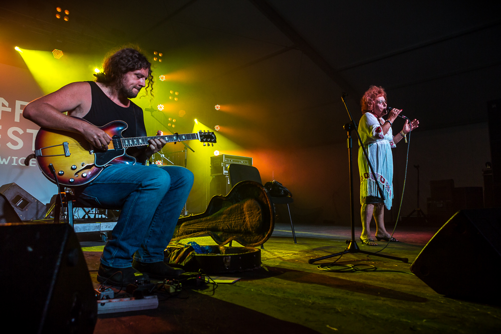 Rewelacyjnie zagrał Richard Dawson. Jego tegoroczna płyta Peasant pokazała frapujące aranżacje na zespół, ale Dawson wystąpił tak, jak gra od lat, czyli solo, a z Peasant zagrał ze trzy utwory. Spokojne otwarcie a capella mogło zmylić, bo Dawson występuje tak, jakby jutra miało nie być i już w trzecim utworze był na antypodzie otwarcia koncertu, grając obłędny gitarowy instrumental. Intensywność jego ekspresji była fascynująca (za każdym razem jest) i podkreślała kapitalne połączenie folkowej tradycji z ekstrawagancjami, szaleństwa z pięknem. Wspaniały koncert na gitarę i głos zagrali też Genowefa Lenarcik i Raphael Rogiński, czyli Żywizna. Pani Genowefa dysponuje głosem mocnym, głębokim i surowym, który „rzewnym” kurpiowskim pieśniom nadaje dramatycznej mocy. Improwizowany akompaniament Rogińskiego, utrzymany w kompletnie niesłowiańskim idiomie, kapitalnie wznosi te pieśni ponad konkretny kulturowo-geograficzny kontekst, podkreśla ich uniwersalny bluesowy charakter. Być może improwizując Rogiński zdejmuje też z Pani Genowefy presję, która mogłaby być związana ze śpiewaniem w ramach aranżacji. To muzyka, którą najlepiej słuchać na żywo, gdy głos Pani Genowefy wybrzmiewa a wariacje Rogińskiego się właśnie tworzą – na Offie oboje byli w doskonałej formie i zagrali fantastyczny koncert.