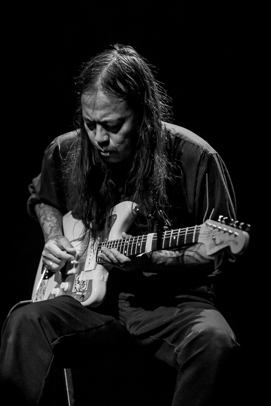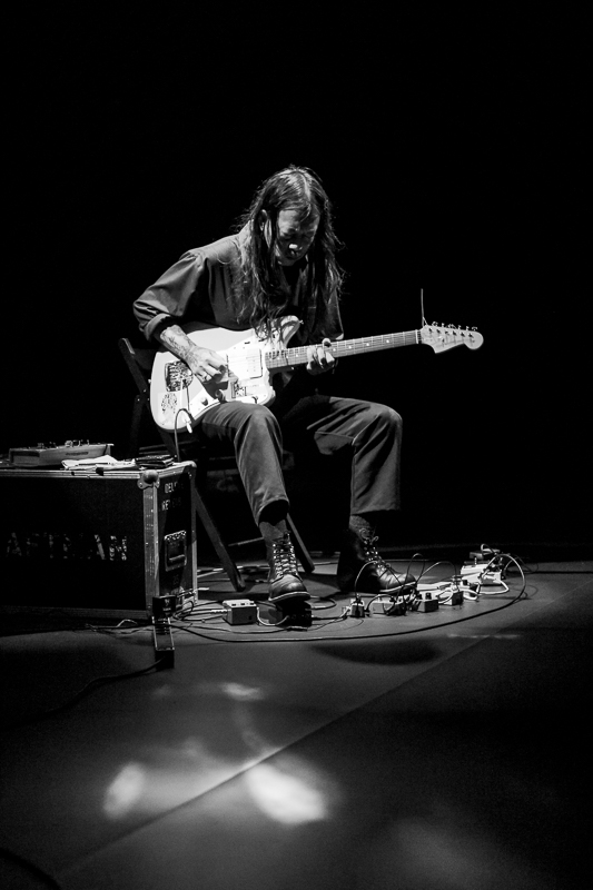 Tashi Dorji już od dekady należy do najciekawszych gitarowych eksperymentatorów, początkowo za sprawą spazmatycznych akustycznych improwizacji w tradycji Dereka Bailey, a poźniej elektrycznych duetów i triów. W Warszawie zagrał solo, elektrycznie i z loopami. I na tyle mocno, że repetycje przywoływały na myśl bardziej no-wave niż minimalizm. Dobrze posłuchać znów mocnej improwizowanej muzyki w sali, która dla takiego grania była przez lata kluczową przestrzenią.