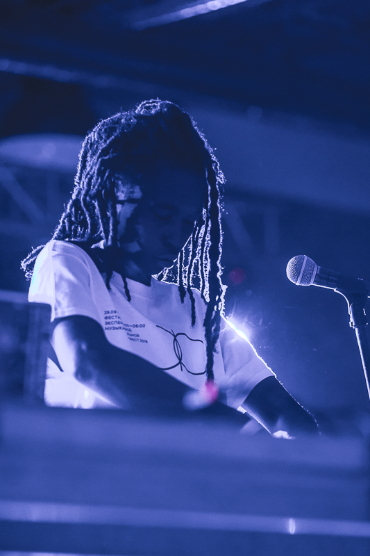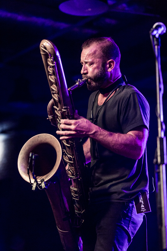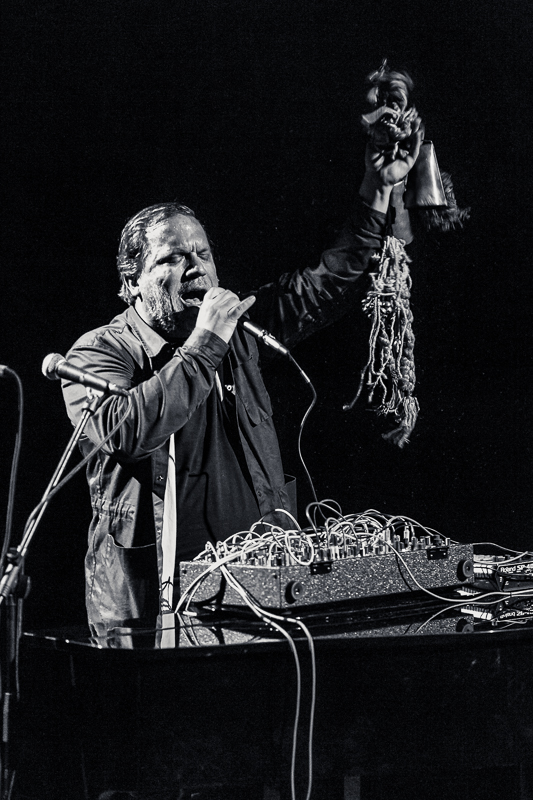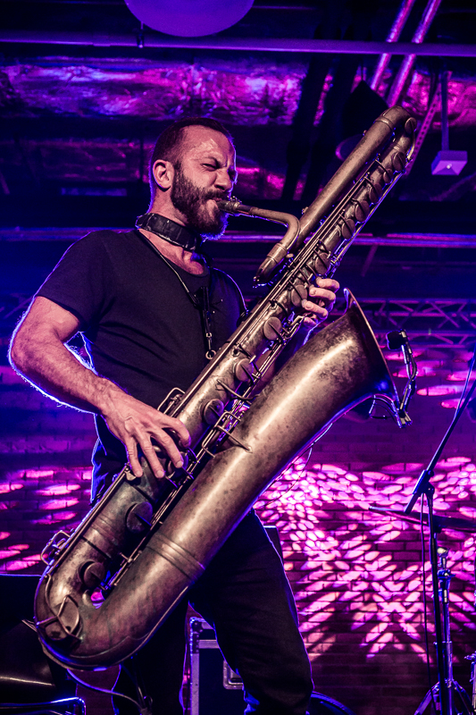 Do miejsca szczęścia nie miała też Moor Mother, której konfrontacyjny występ nie pasował do nowej przestrzeni w gentryfikującym się Koneserze. Co prawda, mógł się okazać swoistym odczarowaniem tej gentryfikacji, ale na to był za cicho, zbyt zboku dużej sali. Nawet kilka metrów od sceny słychać było rozmowy ludzi. Pozostał więc niedosyt, zwłaszcza, że druga część koncertu, bardziej strukturyzowana, była muzycznie ciekawsze niż pierwsza. Głośno, nawet bardzo, zagrało Trio SFD (Colin Stetson, Greg Fox, Trevor Dunn). Stetson i Fox postawili na frontalny, soniczny atak do tego stopnia, że Dunn zdecydowaną większość koncertu grał smyczkiem, inaczej by się nie przebił. Występ trio był pełen potężnych momentów, kanonad Foxa i heroicznych eskapad Stetsona na oddechu okrężnym. Z czasem miałem jednak coraz więcej wątpliwości, czy poza graniem mocno i głośno dzieje się w tej muzyce coś więcej, czy pojawia się jakaś nowa jakość ponad to, co można było zgadnąć znając poszczególnych muzyków? Niestety niewiele.