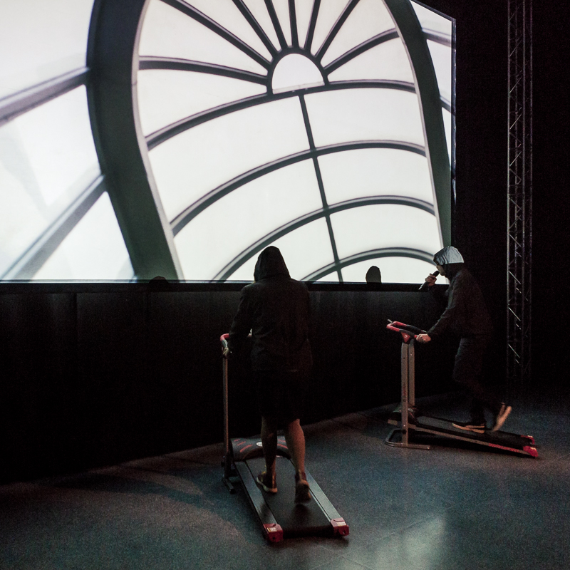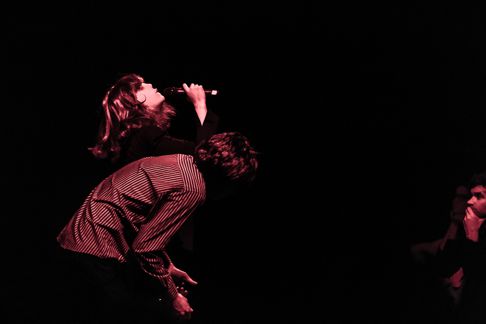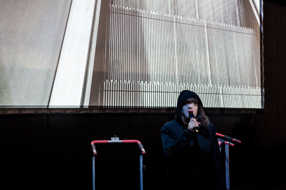 Występ Gazelle Twin miał miejsce w Nowym Teatrze, na ad hoc zaaranżowanej scenie w hallu. To nie sprawdziło się najlepiej - prawie połowa widzów oglądała audiowizualny występ z boku, zarówno w stosunku do ekranu, jak i nagłośnienia. Prowadzony masywnymi, wręcz militarnymi bitami występ nie do końca mnie przekonał. Choć miał mocne, dystopijne momenty i niektóre z filmów faktycznie zapadały w pamięć, to performans dwojga wokalistów / aktorów był momentami banalny. Abstrahując od śpiewu, który nie był obecny we wszystkich utworach (i był ok) oraz świetnego pomysłu z bieżniami, na których performerzy "gonili" za obrazem, ta bezosobowa, korporacyjna prezencja i robotyczna choreografia były trochę trywialne, zwłaszcza biorąc pod uwagę, gdzie się ten występ odbywał.