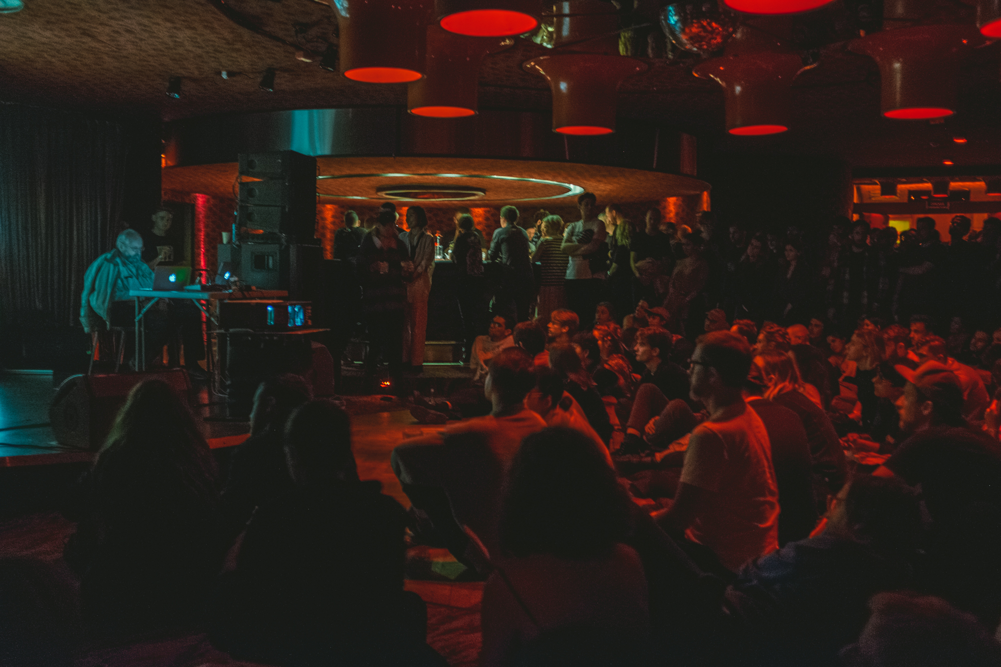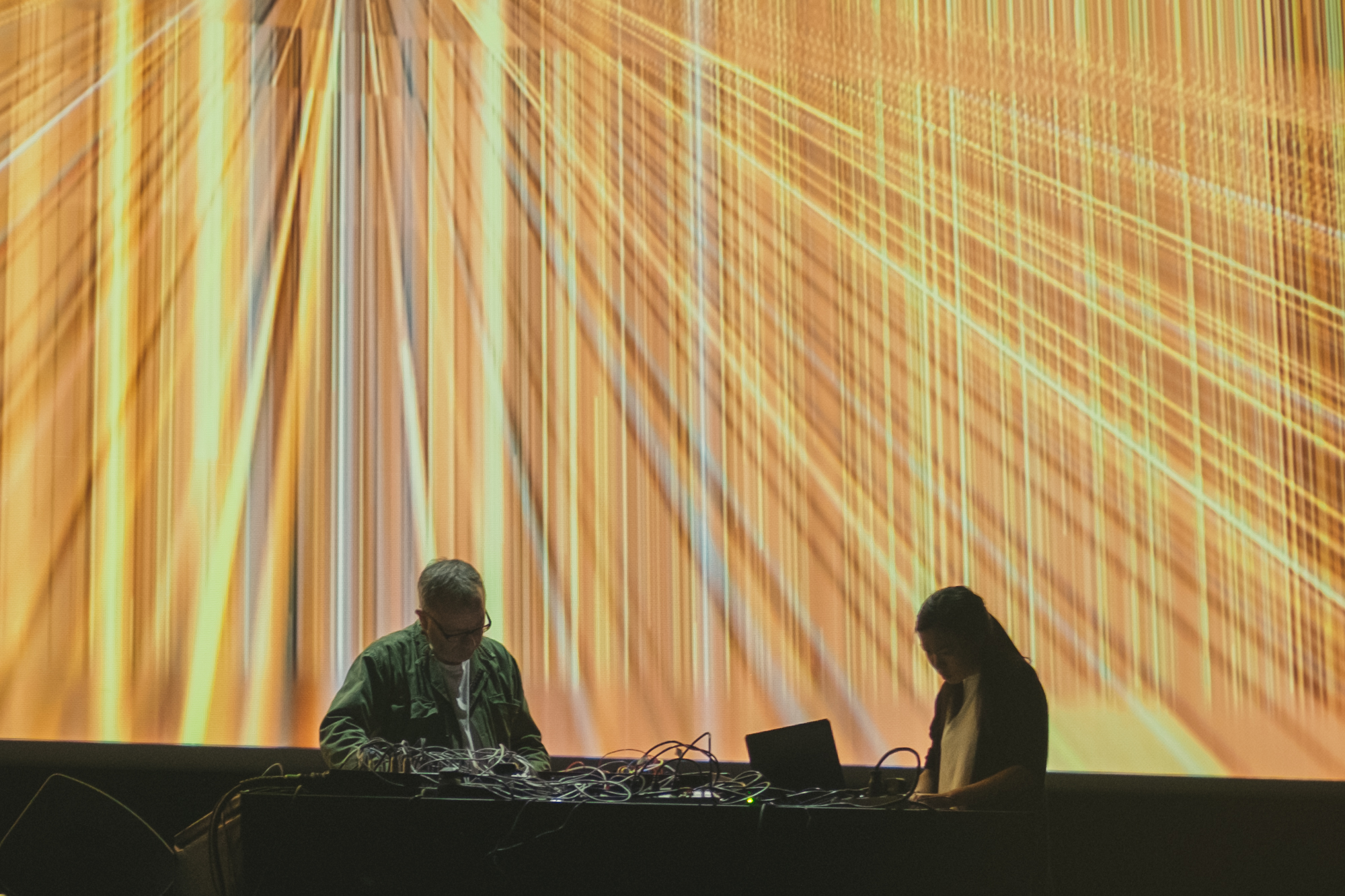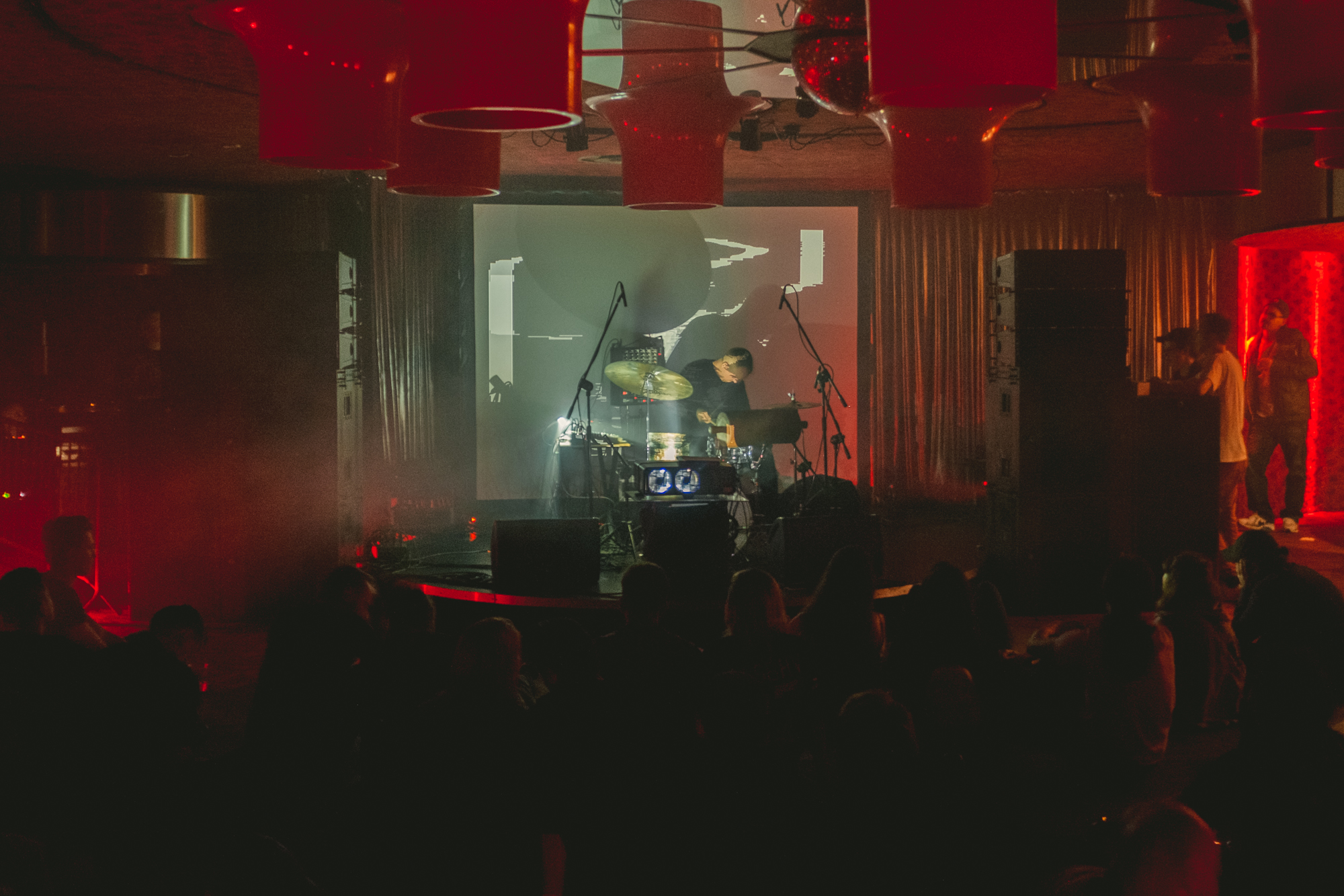Szukałem też tożsamości polskiej sceny na scenach w brutalistycznym Hotelu Forum. Większość koncertów skumulowała się we wspomnianej Kuchni czy Sekretnej Loży, dawnym hotelowym klubie w podziemiach. W Kuchni ciekawie ze swoim elektronicznym materiałem wypadł Bartek Kujawski, chociaż załapałem się tylko na część jego koncertu. Wcześniej byłem piętro niżej, gdzie grał Wojciech Bąkowski z materiałem Jazz Duo, który rzecz jasna nie ma w sobie nic z jazzu – to osobliwa i osobista wypowiedź na żywo, zaprezentowana trochę w formule recitalu. Szkoda tylko, że nie konsekwentnie bazującą na nowej płycie, ale wplatającą elementy Telegaz, przez co straciła trochę na wyrazistości. Ciekawy set grał Jan Młynarski – grał, bo nie zagrał go spójnie do końca; w łączenie perkusjonaliów z elektroniką czegoś mi zabrakło. Dwa najbardziej rozimprowizowane sety dali Jachna/Wójciński i duet Paper Cuts, nie do końca jednak do programu pasujący. Pierwszy bardzo liryczny, drugi trochę niezdecydowany (skoro Kacperczyk miał syntezator, Kurek mógł w większym zakresie eksplorować perkusjonalia a nie elektronikę, byłoby ciekawiej). Nie do końca przekonała mnie przetwarzająca swój wokal Olga Szymula. Potencjał intrygującego podkreślenia wątków muzyki ludowej miał koncert Remka Hamaja z grupy Księżyc w towarzystwie elektroniki i dwójki śpiewaczek tradycyjnych, ale gdzieś w połowie się rozpadł, nużył, przez co nie do końca było wiadomo dokąd zmierza. Podobnie duet Pawła Romańczuka i Tomoko Sauvage z wizualizacjami bazującymi na zdjęciach Zofii Rydet. Romańczuk dwoił się i troił, w pewnym momencie wręcz przesadzając z brzmieniem syntezatora, natomiast Sauvage grała oszczędnie. Jakby trochę nieprzygotowana powtarzała nieustannie męczący w pewnym momencie sposób grania na misach wodnych. Razem nie za wiele grali wspólnie, a raczej naprzemiennie, więc dramaturgia koncertu pozostawiła wiele do życzenia.