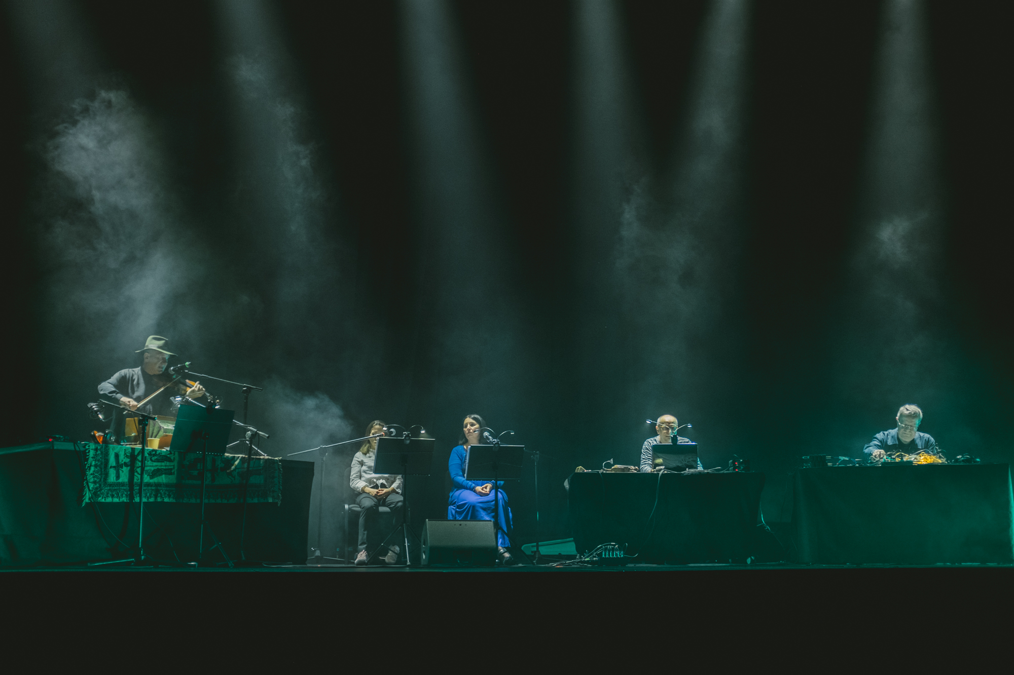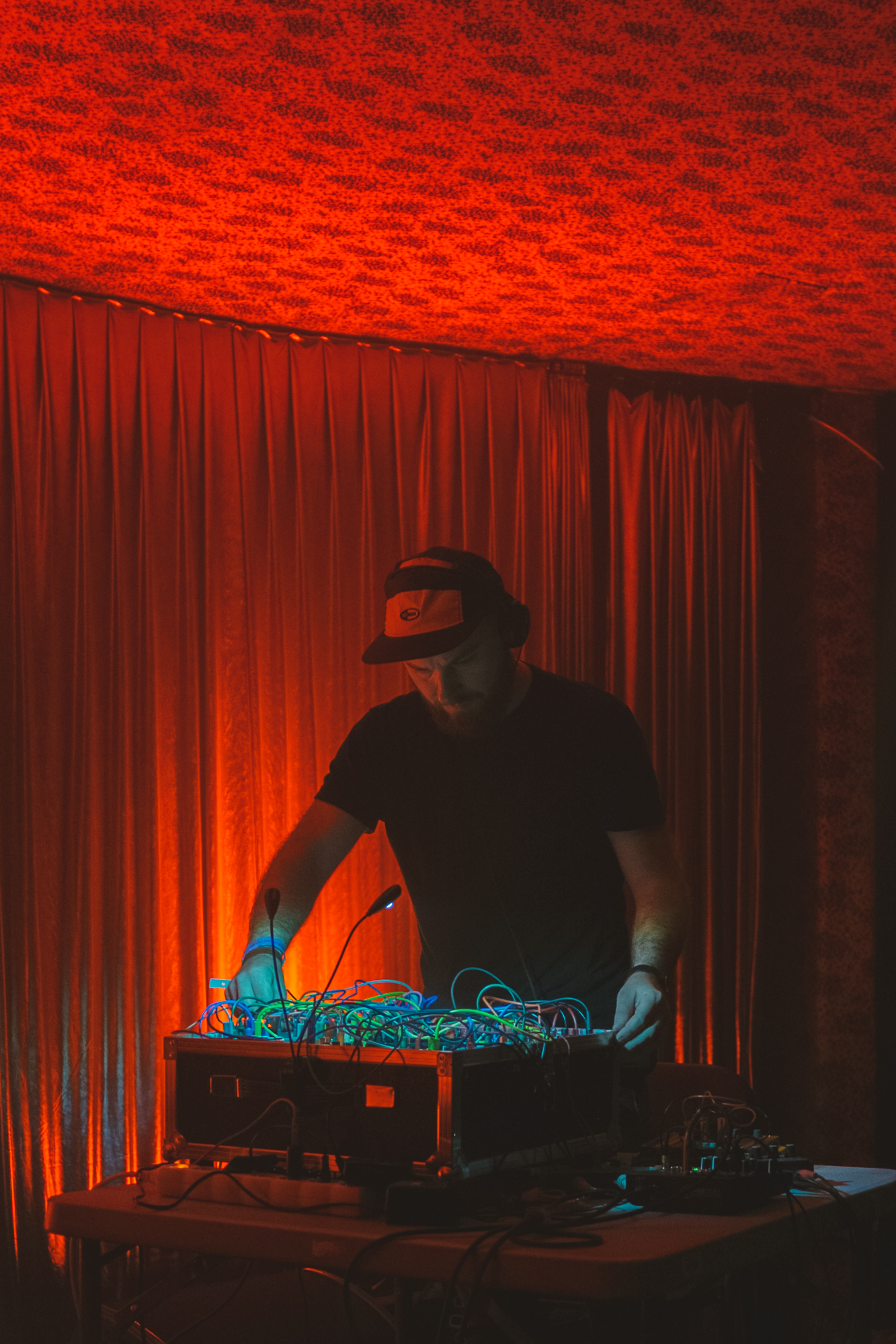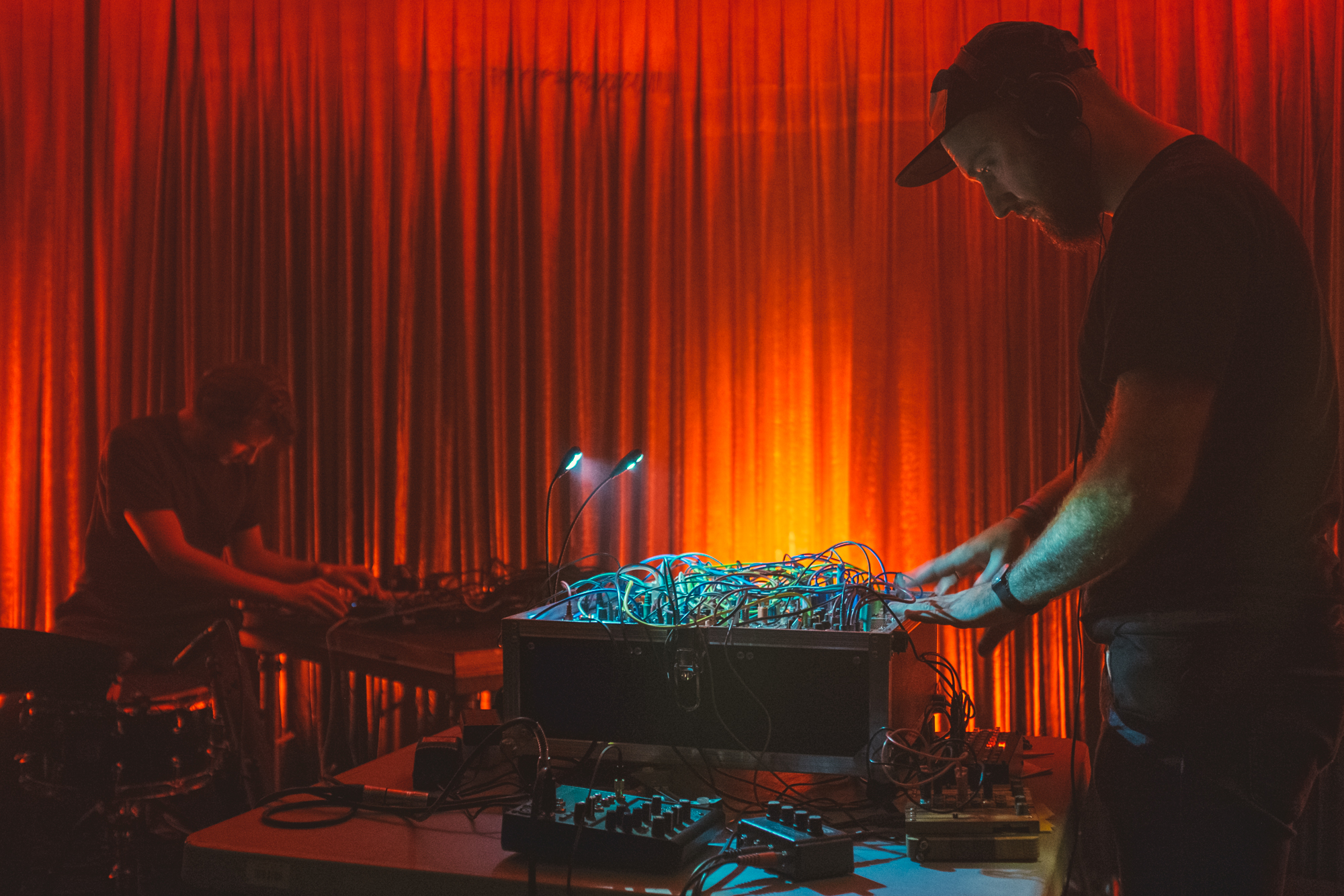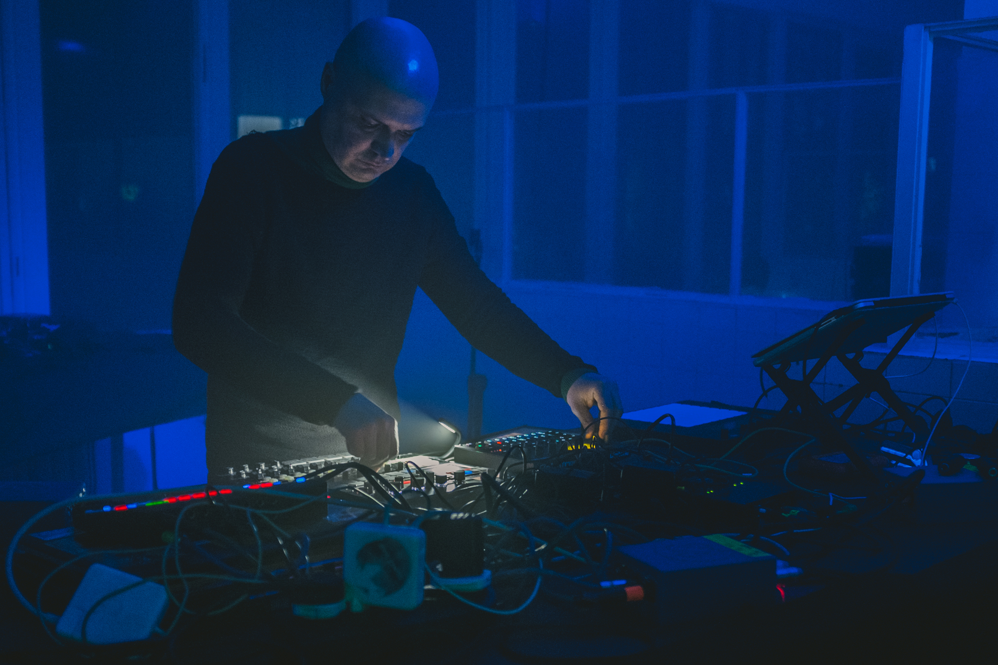 Szukałem też tożsamości polskiej sceny na scenach w brutalistycznym Hotelu Forum. Większość koncertów skumulowała się we wspomnianej Kuchni czy Sekretnej Loży, dawnym hotelowym klubie w podziemiach. W Kuchni ciekawie ze swoim elektronicznym materiałem wypadł Bartek Kujawski, chociaż załapałem się tylko na część jego koncertu. Wcześniej byłem piętro niżej, gdzie grał Wojciech Bąkowski z materiałem Jazz Duo, który rzecz jasna nie ma w sobie nic z jazzu – to osobliwa i osobista wypowiedź na żywo, zaprezentowana trochę w formule recitalu. Szkoda tylko, że nie konsekwentnie bazującą na nowej płycie, ale wplatającą elementy Telegaz, przez co straciła trochę na wyrazistości. Ciekawy set grał Jan Młynarski – grał, bo nie zagrał go spójnie do końca; w łączenie perkusjonaliów z elektroniką czegoś mi zabrakło. Dwa najbardziej rozimprowizowane sety dali Jachna/Wójciński i duet Paper Cuts, nie do końca jednak do programu pasujący. Pierwszy bardzo liryczny, drugi trochę niezdecydowany (skoro Kacperczyk miał syntezator, Kurek mógł w większym zakresie eksplorować perkusjonalia a nie elektronikę, byłoby ciekawiej). Nie do końca przekonała mnie przetwarzająca swój wokal Olga Szymula. Potencjał intrygującego podkreślenia wątków muzyki ludowej miał koncert Remka Hamaja z grupy Księżyc w towarzystwie elektroniki i dwójki śpiewaczek tradycyjnych, ale gdzieś w połowie się rozpadł, nużył, przez co nie do końca było wiadomo dokąd zmierza. Podobnie duet Pawła Romańczuka i Tomoko Sauvage z wizualizacjami bazującymi na zdjęciach Zofii Rydet. Romańczuk dwoił się i troił, w pewnym momencie wręcz przesadzając z brzmieniem syntezatora, natomiast Sauvage grała oszczędnie. Jakby trochę nieprzygotowana powtarzała nieustannie męczący w pewnym momencie sposób grania na misach wodnych. Razem nie za wiele grali wspólnie, a raczej naprzemiennie, więc dramaturgia koncertu pozostawiła wiele do życzenia.