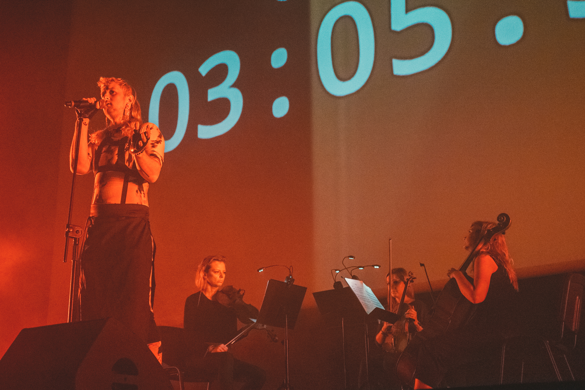 Drugi z ważnych koncertów w ICE był popisem wokalnym Colina Self, który zagrał razem z trio smyczkowym (Karolina Rec, Julia Ziętek i Maria Tomala) i grupą osób z publiczności (wcześniej odpowiednio przećwiczonych). Muzyk zaprezentował materiał z zaplanowanej na jesień płyty „Siblings”, łącząc brzmienie smyczków i elektroniki. Wystąpił w specyficznym kombinezonie, tworząc para-performance, w którym opowiadał o sobie i poszukiwaniach własnego ja. Zwrotów akcji nie brakowało – od lirycznego śpiewu, bo gęstniejącą elektronikę, chociaż czasem brzmiało to lekko infantylnie.