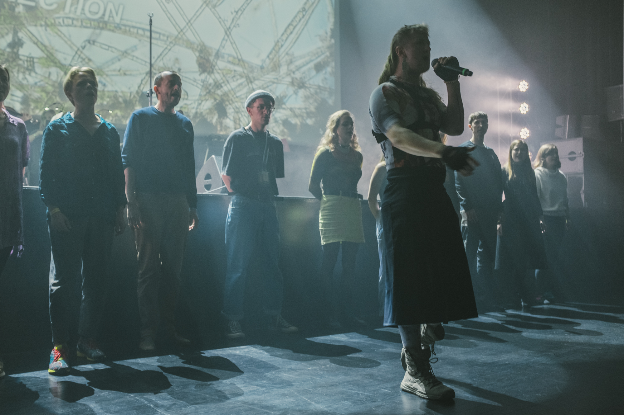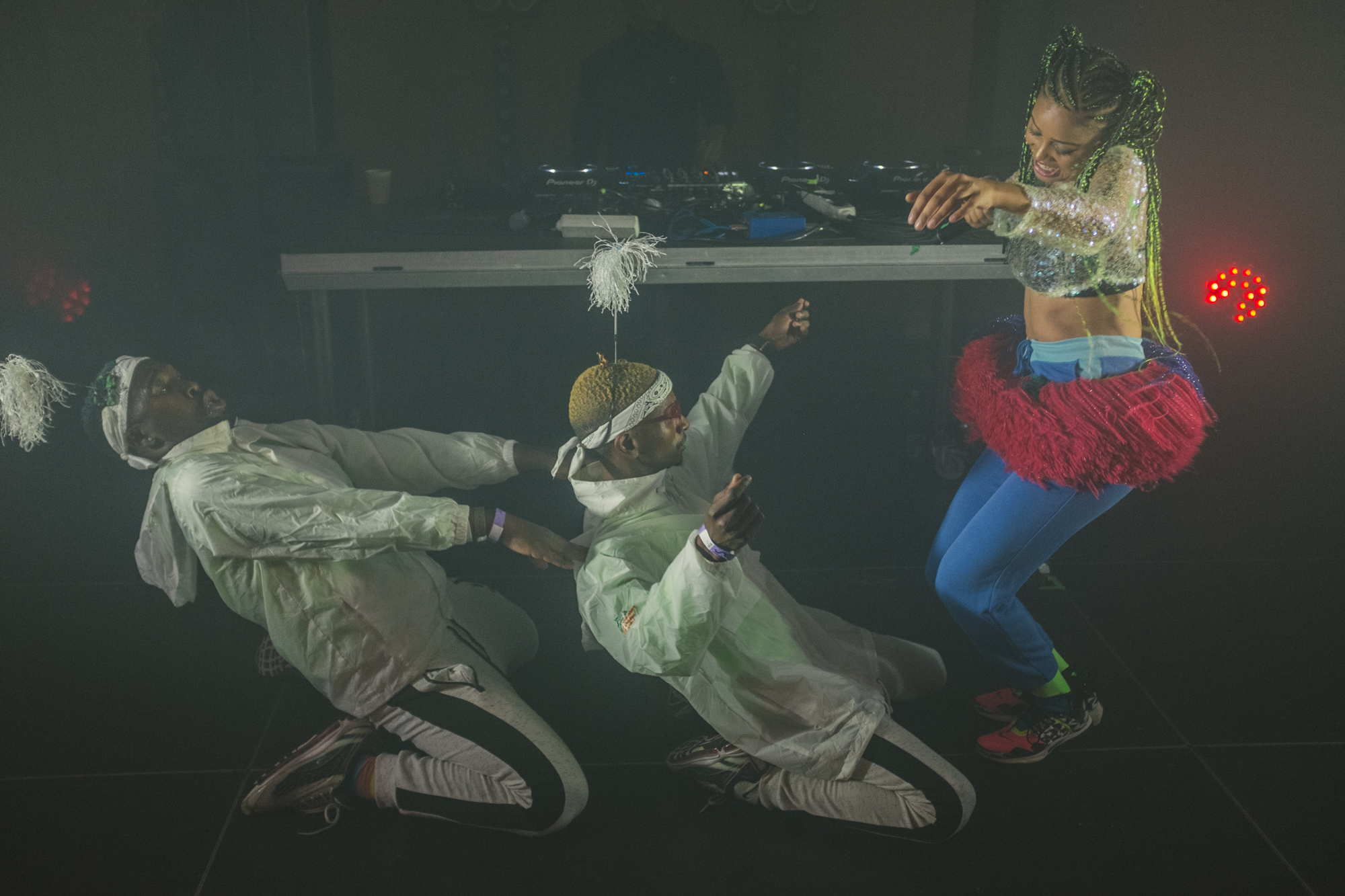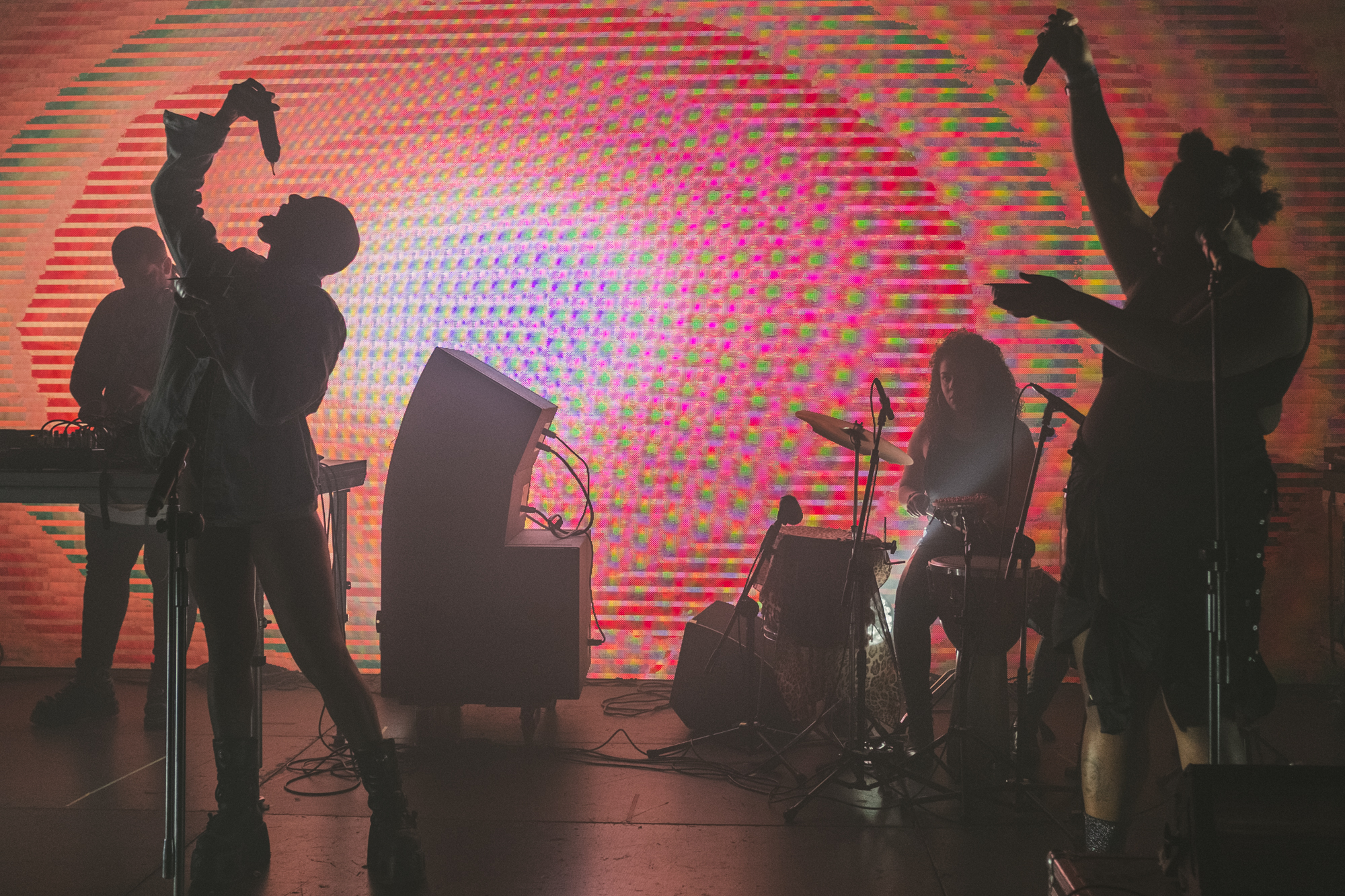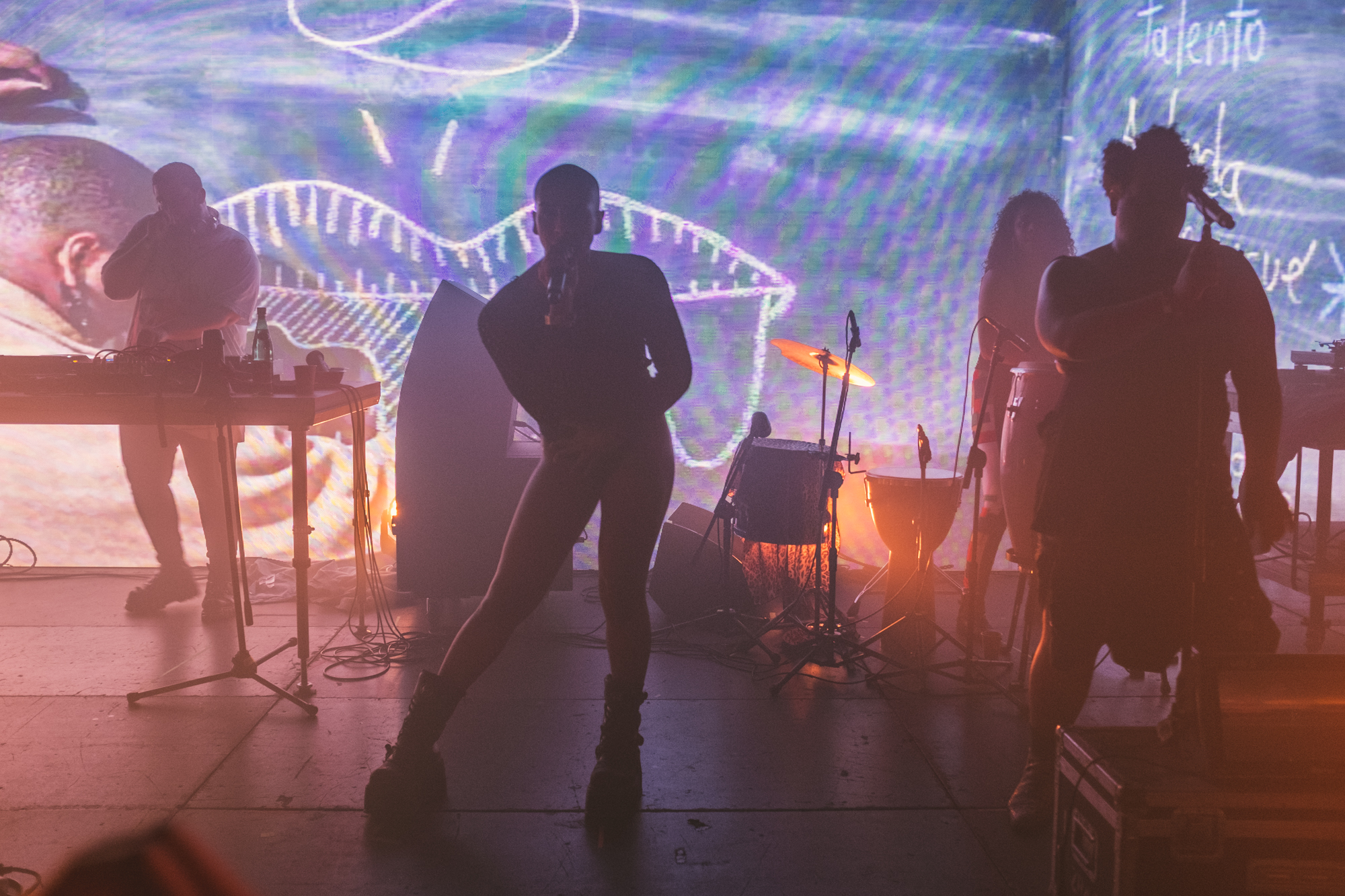 Jednym z mocniejszych momentów festiwalu był także koncert raperki Linn de Quebrada w Hotelu Forum – w kwartecie, z producentem, perkusistką i dodatkową wokalistą. Bardzo intensywny i rytmiczny, ale też prowokujący: de Quebrada łączy rap z sambą i pulsującym rytmem, stając w szranki ze stereotypami ról płciowych i kulturowych, w bardzo chwytliwej i wyzywającej formule. Ciekawie wypadły dwa inne koncerty w ICE, chociaż nie jestem pewien czy była to dla nich właściwa przestrzeń. DJ Rabbit, Sam Rolfes i House of Kenzo zapamiętałem przede wszystkim jako taneczny show, muzycznie mdły, ale performatywnie oryginalny: tutaj mieliśmy również do czynienia z tancerzami, ale raczej tymi o prominencji klubu go-go niż teatru tańca. Najpierw tańczyli i wili się na scenie, potem weszli w publiczność, aby w bardzo ekspresyjny sposób z elementami striptizu wypaść odważnie, chociaż też perwersyjnie. Dodatkiem było komputerowe przetwarzania tańca przez Rolfesa, chociaż na tle głównych bohaterów pozostało w cieniu.