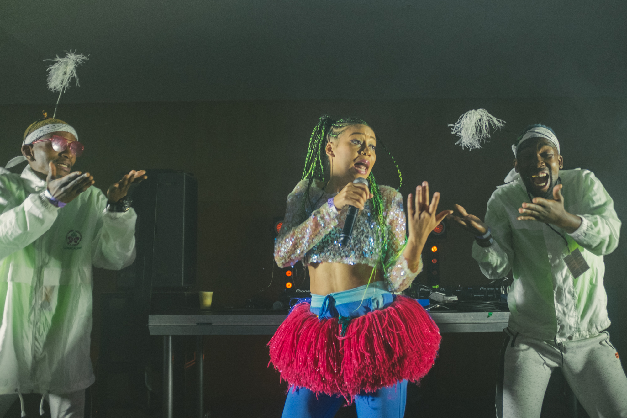 Myślałem, że nie wiele już mnie zdziwi, godzinę po Sisso na scenie pojawiła się Sho Madjozi, a razem z nią DJ Lag i dwóch tancerzy. Zagrali najlepszy koncert spośród tych, które zobaczyłem na tegorocznym Unsound. Madjozi czerpie z shangan electro i gqom, ale ze względu na durbańskiego producenta siłą rzeczy dominowało to drugie. Niezwykła komunikatywność, przebojowość, śpiew w wielu językach i gęsta, sugestywna warstwa muzyczna – z minuty na minutę robiło się coraz intensywniej. A dwójka tancerzy, którzy nie tylko sprawnie się poruszali, ale też wygłupiali i wchodzili dosłownie na wszystko na co się dało, sprawili, że był to też absorbująco performatywny i szczery show. Sobotni program w Forum nie był łatwy do ogarnięcia, bo niemal w tym samym czasie grało mnóstwo interesujących artystów. W Kuchni dotarłem na (niestety nie cały) koncert Rozzma, który frapująco łączy wpływy muzyki bliskowschodniej z gęstym, futurystycznym basowym brzmieniem. Wszystko grał w pojedynkę na samplerze i laptopie, a w pewnym momencie chwycił za mikrofon, żeby – jak na debiutanckiej epce Donya Fakka – dopełnić muzykę wokalem. Świetny koncert, zwłaszcza w nietypowej przestrzeni dawnej kuchni Hotelu Forum, która bardzo dobrze się sprawdziła.