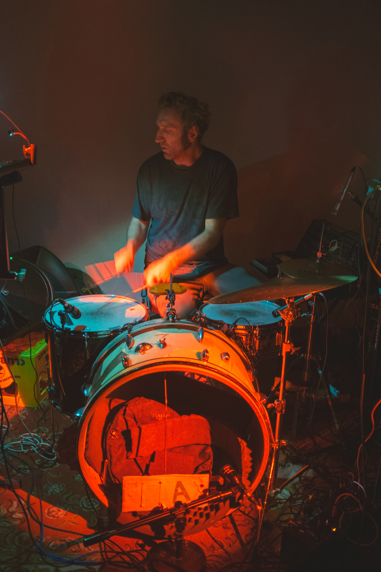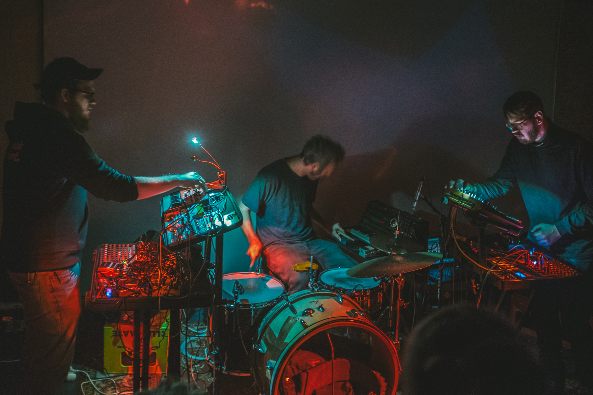 Mazutti powstało jako spontaniczne połączenie sił duetu Mazut i Macia Morettiego. Na wydanej kilka tygodni temu płycie eksplorują swoje technoidalne, dronowe i noise'owe zapędy, ale dzięki perkusji jest treściwiej niż na albumach duetu; utwory mają często zgrabne formy, bliskie nawet dokonaniom Tortoise czy zespołowi Wulkan. Czuć jednak że to efekt sesji raczej improwizowanej i to o tyle istotne, że na koncertach nie ma się co spodziewać odgrywania tego materiału. W Ziemi trio również improwizowało, bazując na samplerach, syntezatorach i przetwarzając je przez efekty. Moretti uzupełniał ten pulsujący dźwiękowy konglomerat grając raczej rytmicznie na perkusji, ale też chwytając za Korga, snując zgrabne i wyraziste wstęgi. Momentami było trochę krautrockowo - czy to z bitem z automatu czy z perkusji. Na plus wypadła linearność koncertu, transowy charakter, dzięki czemu cały czas coś się działo. Na minus być może zbyt duża spontaniczność i zdaje się, że nie do końca muzycy przemyśleli to, co i kiedy powinno się dziać - czasem miałem wrażenie, że pomysłów na raz było zbyt wiele i robiło się trochę chaotycznie. Ale to był dopiero drugi, po warszawskim Avant Arcie (a więc po przerwie), koncert zespołu, więc może po prostu trzeba jeszcze kilku spotkań na żywo, żeby kształt tej muzyki miał dojść.