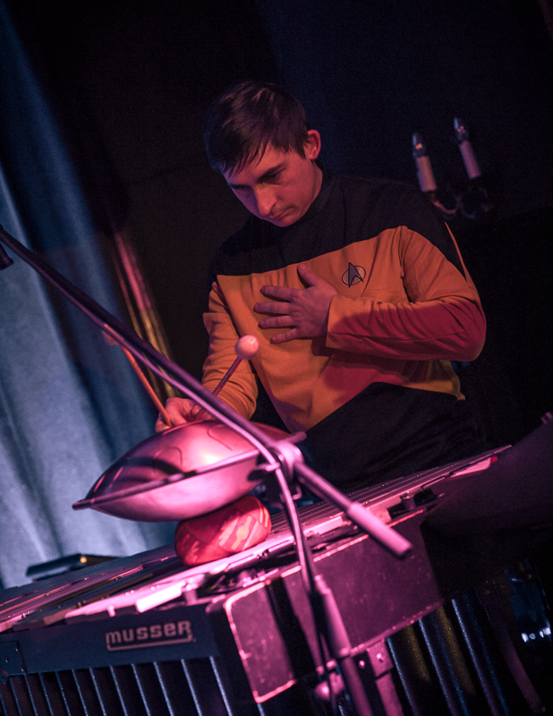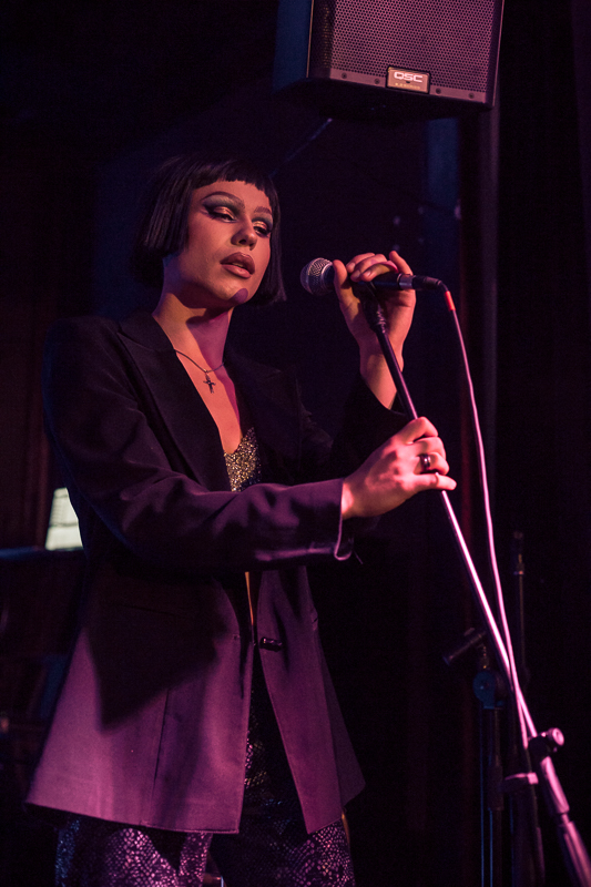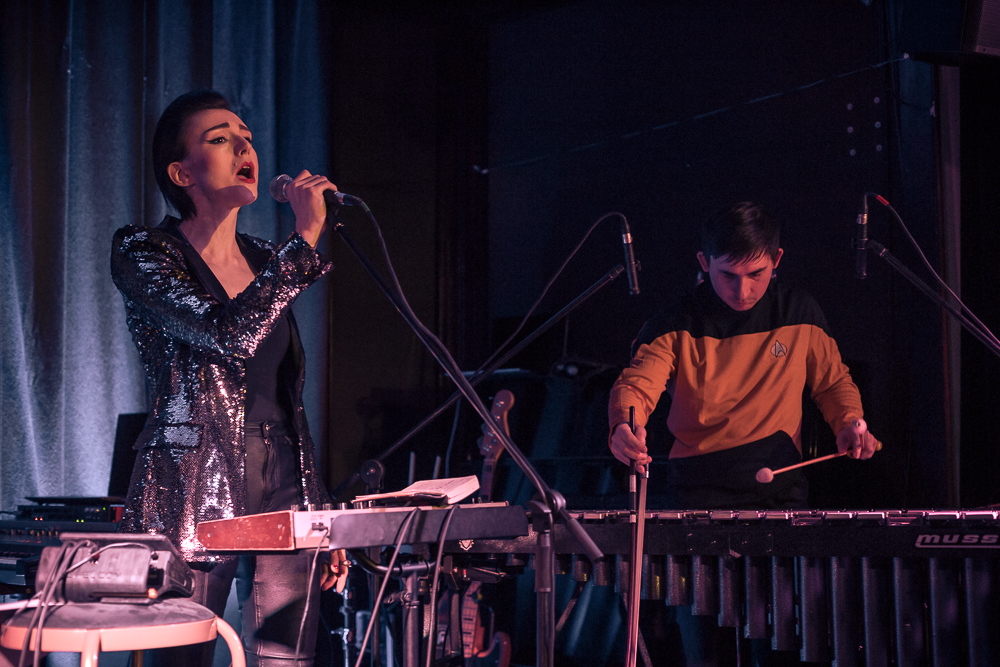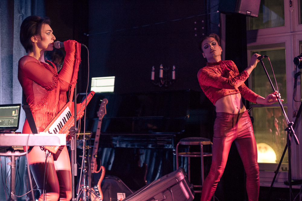 Na benefis Olgi Mysłowskiej z okazji połowy życia pracy artystycznej (gratulujemy i życzymy dalszych sukcesów na scenach polskich i światowych) złożyły się dwa koncerty Nebular Noise i Polpo Motel. Nebular Noise (Mysłowska, Miłosz Pękala, Patryk Zakrocki) wcześniej na żywo nie słyszałem i koncert w Spatifie był trudnym pierwszym razem. Cicha, oszczędna w środkach muzyka Nebular Noise lepiej wypadłaby w miejscu cichszym, najlepiej z miejscami siedzącymi, gdzie odgłosy baru nie kłóciłyby się z elektroniką i perkusjonaliami. Polpo Motel przebiło się bardziej, zwłaszcza, że większość koncertu Mysłowska i Pigoński zagrali z gitarzystą i basistą. Wzmocniło to brzmienie, ale nie zmieniło jego chłodnego, syntezatorowego oblicza. W kilku utworach do grupy dołączyła drag queen Hieemeras The Queen, która świetnie wzmocnilła performatywny aspekt koncertu. Sto lat!