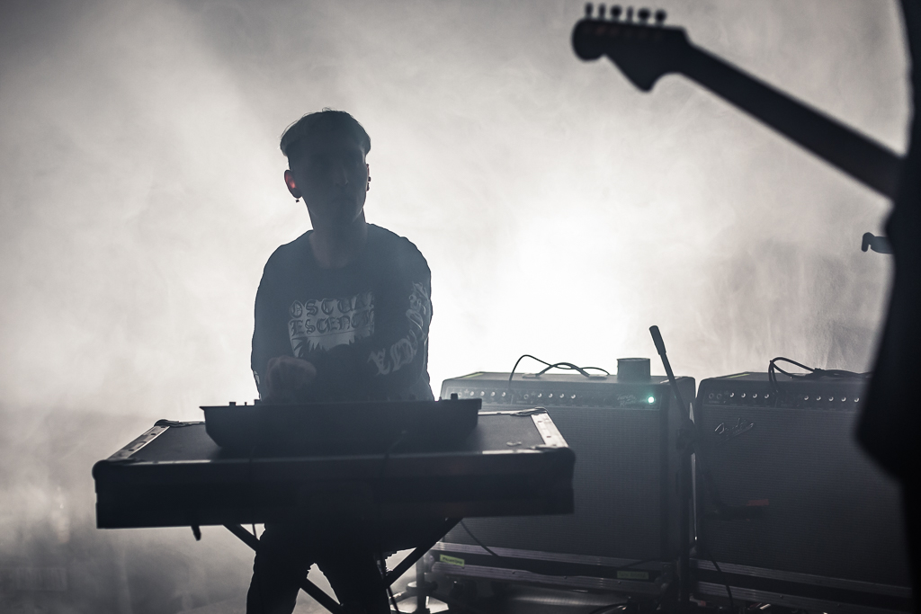 Obecny w muzyce Föllakzoid trend w stronę minilizmu i redukcji na tegorocznej płycie zaowocował muzyką bliższą techno niż psychodelii, od której chilijska grupa wychodziła. Wiązał się ze też zmianą składu, w zespole nie ma już basisty i wokalisty znanego z poprzednich płyt i koncertów. Koncert w Pogłosie tę zmianę przypieczętował. Föllakzoid w kwartecie zagrali swoisty live act, prawie godzinną pół-improwizację czerpiącą z nowego materiału, nie wracając w ogóle do starych utworów. Przekształcenie rockowego instrumentarium w składowe architektur rodem z techno robiło wrażenie, a charakterystyczne dla grupy pętle i pogłosy w zredukowanej formie odnajdywały się jako elementy krążące wokół rytmu. Niestety w drugiej połowie występu napięcie trochę siadło, w przejściach pojawiło się trochę mielizn. Słuchałem tego koncertu z fascynacją, jak twardą formę przyjęła muzyka Föllakzoid, ale równocześnie z tęsknotą za bardziej barwnym, psych-rockowym charakterem ich koncertów sprzed lat.