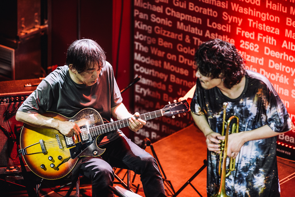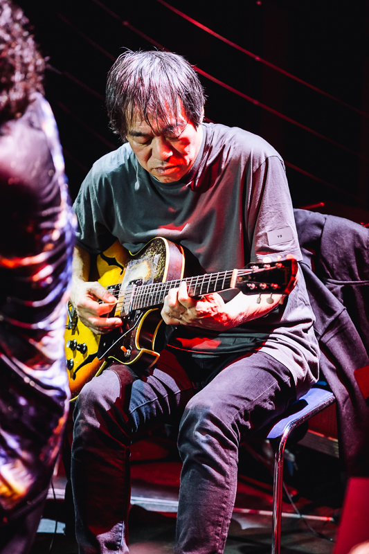 Doskonały koncert Otomo Yoshihide New Jazz Quintet. Z jednej strony bardzo jazzowy, z drugiej kompletnie nie jazzowy w momentach, brzmieniach, zwłaszcza gitarowych dygresjach. Na dodatek tak intensywny, że chwilami można było pomyśleć, że gra orkiestra a nie kwintet.